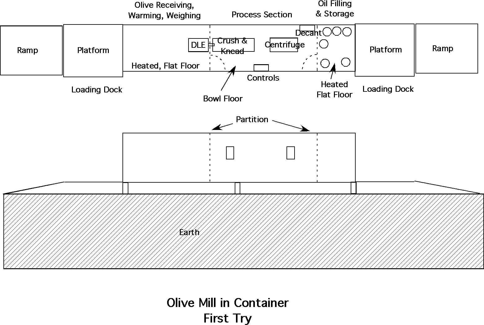 I am trying to think about material handling. There is more to this than just fitting all the equipment into the container. The olives and oil have to move in and out smoothly.