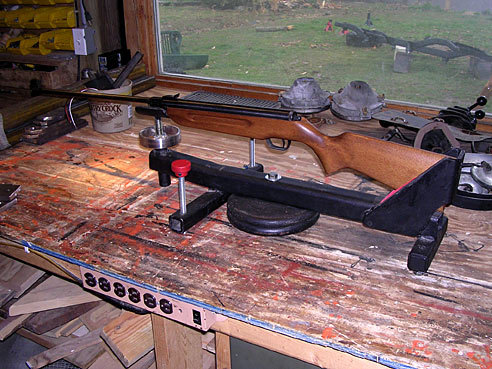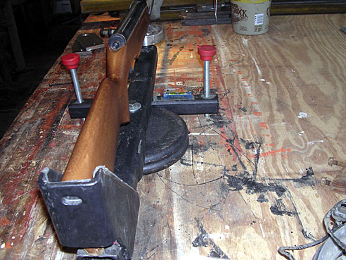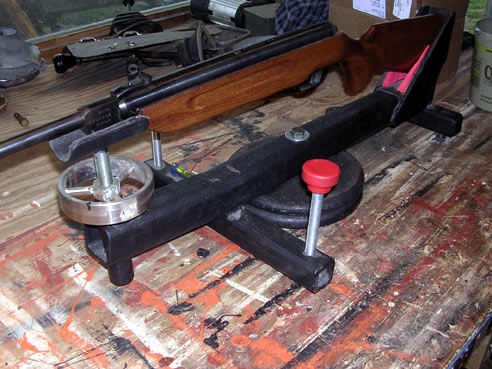 I found this hitch while ago at the trash site. Recently I chopped it up and turned it into a rifle rest. Works quite well, it was bit on the light side - that's why I attached those dumbbell discs to it. They were trashed too - the only thing I had to buy was the bubble level.