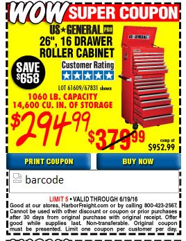 Last year I purchased one of the Harbor Freight units. They are an excellent value. If you are lucky you may find an open box unit in the store and save a little more if the manager has any leeway in lowering the price. If you could find a close out unit that is where you can really save some coin. They are selling a lot of tool boxes for a reason.