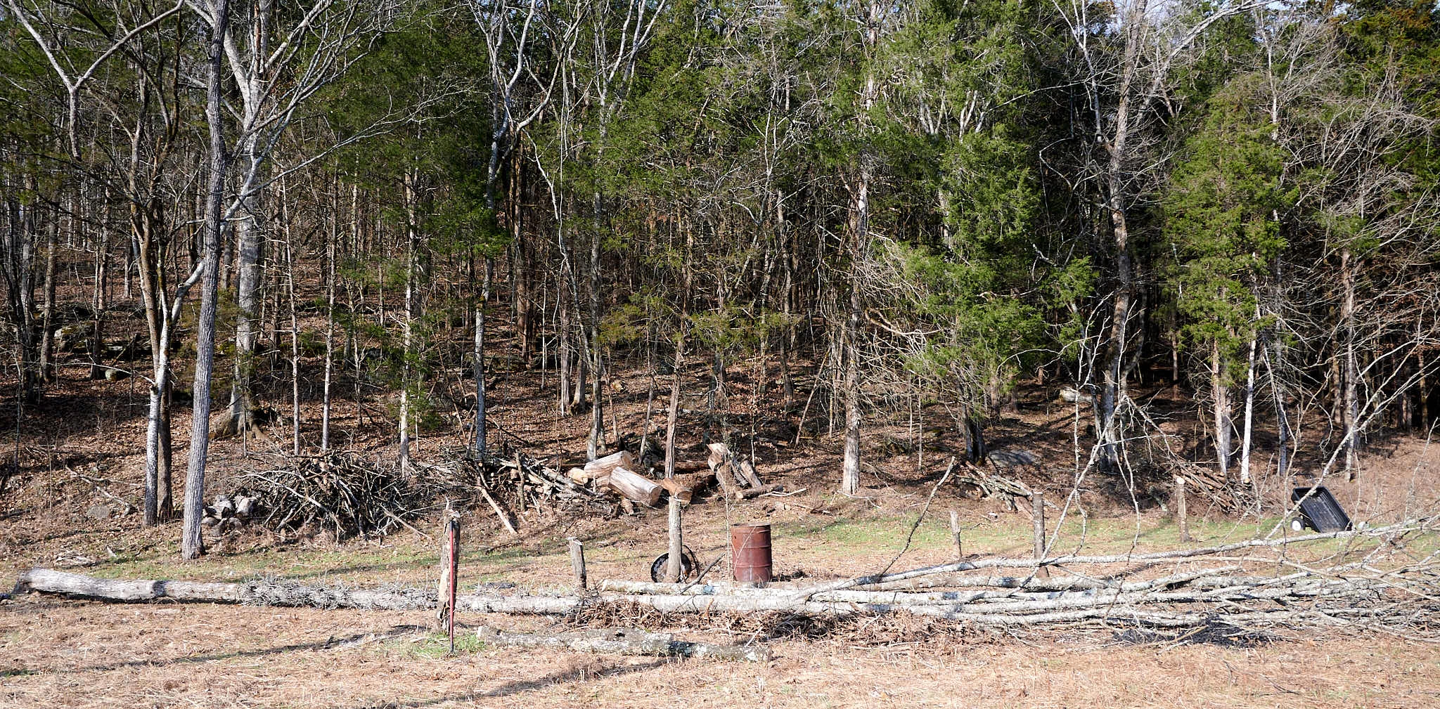 Might be worth having a tree service just pick em and grind em in place, right into the back of a truck. But, could be expensive.Whether I have then pushed over with a dozer or cut them, those thorns are going to land all over the area when the trees fall. It used to be a small feedlot next to the barn years ago. Dragging them may spread the thorns, but I have to get them out of the way in order to keep this area cut. I'd just have to cut it with maybe my Bachtold brush mower that has solid wheels.