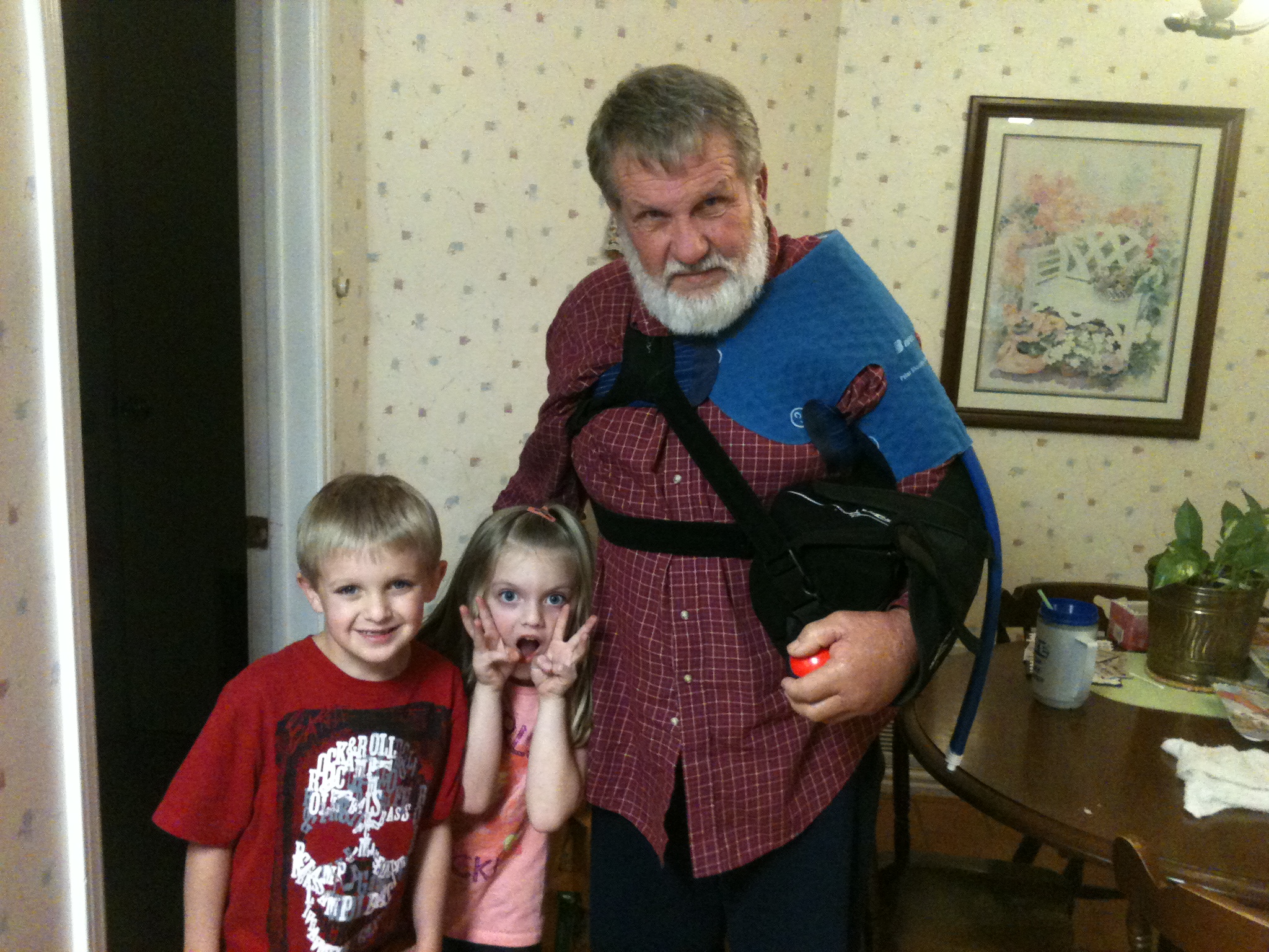 Anyway they did what is called a reverse replacement. Instead of the ball being on the arm and the socket on the shoulder their positions were reversed. Also the deltoid muscles were reattached to lift the arm since the rotator cuff was gone. It took about two months each to recover from the surgeries. FIL has mowed his yard all summer. He uses his weedeater. Only problem is that he cannot raise either arm higher than straight out horizontal. He is not in any pain.