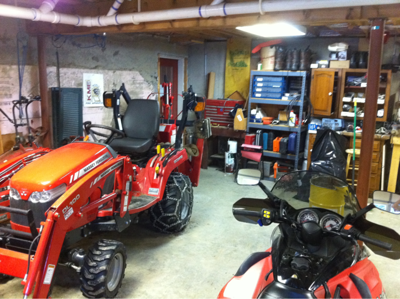This is more my toy room than tractor shed. 24x24 walk out basement garage 9x7 garage door