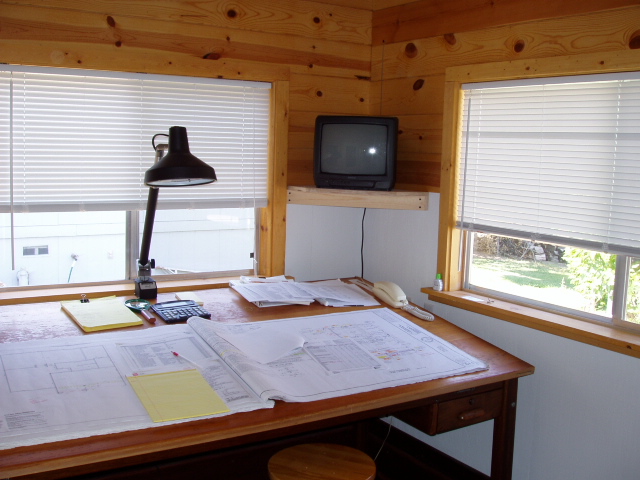 I built this 32'x40' shop/garage a couple of years ago. The center bay roll up door is twelve foot high. There are two 6x6 center posts with no other interior bearing walls. The 8'x12' corner office in the back of the first bay is made with removable walls if a future owner wants the full 32' depth. The center shelving next to the TC40 is nested around one of the two 6x6 posts. There is a four foot passageway between the front office wall corner and the rear edge of the center shelving.