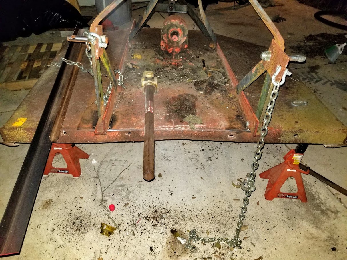 * Deck - This has a few cracks and rusted through welds. I have everything I need to clean it up and weld it (MIG) so I can handle that part. The deck has some bent edges and will need to have new skids welded onto the front. There is also no guard on the front (chain or rubber) but I can strap a tire tread across that. The mounting holes are still there.