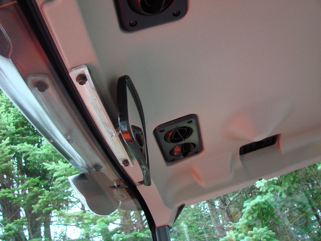 The mirror was just a convex mirror I got at the local auto parts shack and I used a 12 inch piece of 1 inch aluminum angle to mount it. I used the existing bolts that was in the cab. I didn't want to modify the cab for a mirror.
