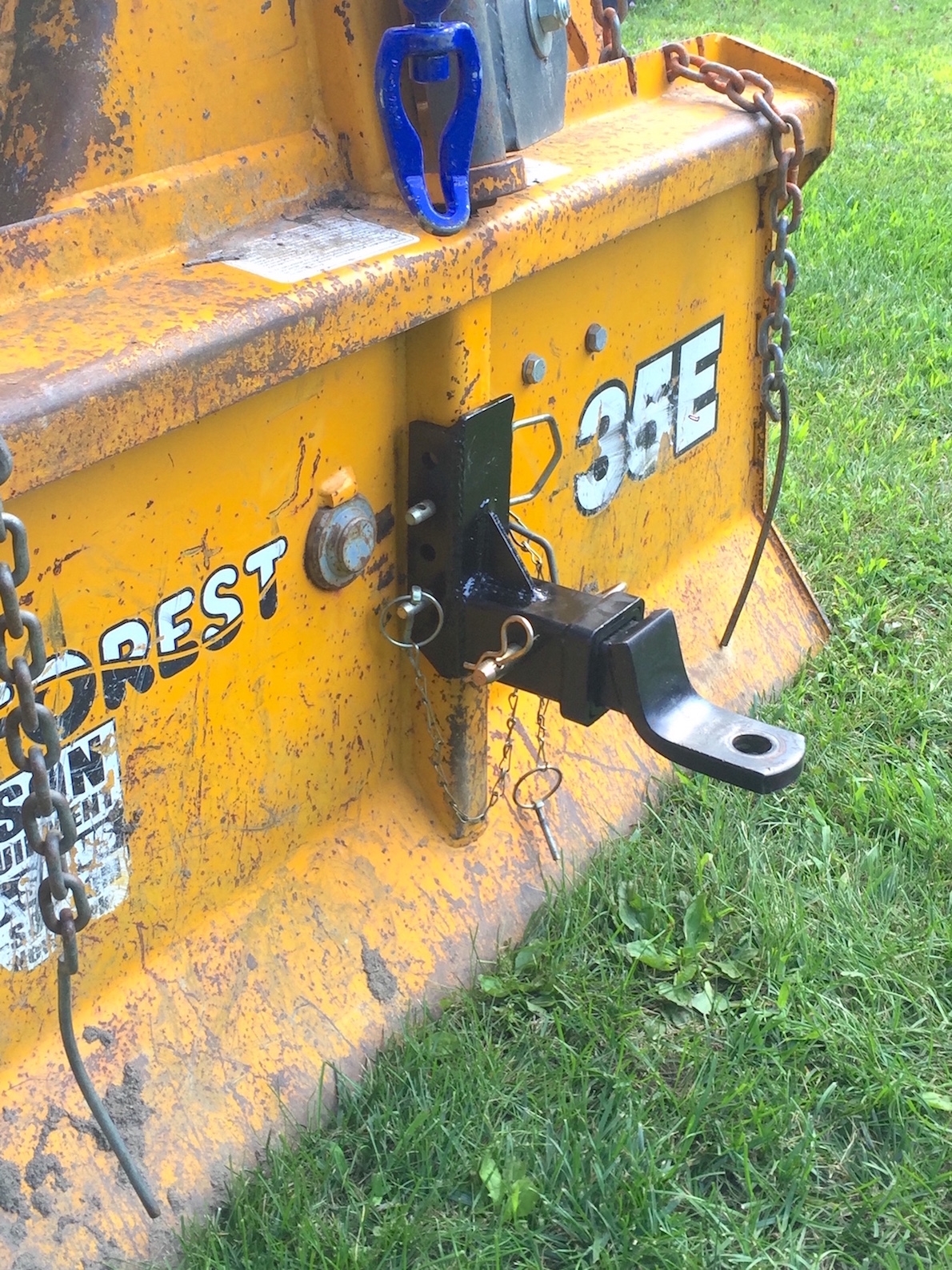 I have a Uniforest 35E logging winch (predecessor to their current 35M model). There is a vertical rib running up the center of the butt plate for this winch. I noticed that their larger winches came with a hitch that bolted on to this rib. I bought one of those hitches, drilled a couple of holes in the rib - mimicking what Uniforest did on their larger hitches and pinned it on, so I could remove it without any tools if it was in the way. (They recommend not having it on there when skidding logs, since it can get banged up by the logs.) This was a pin-type hitch. Here is what it looked like: