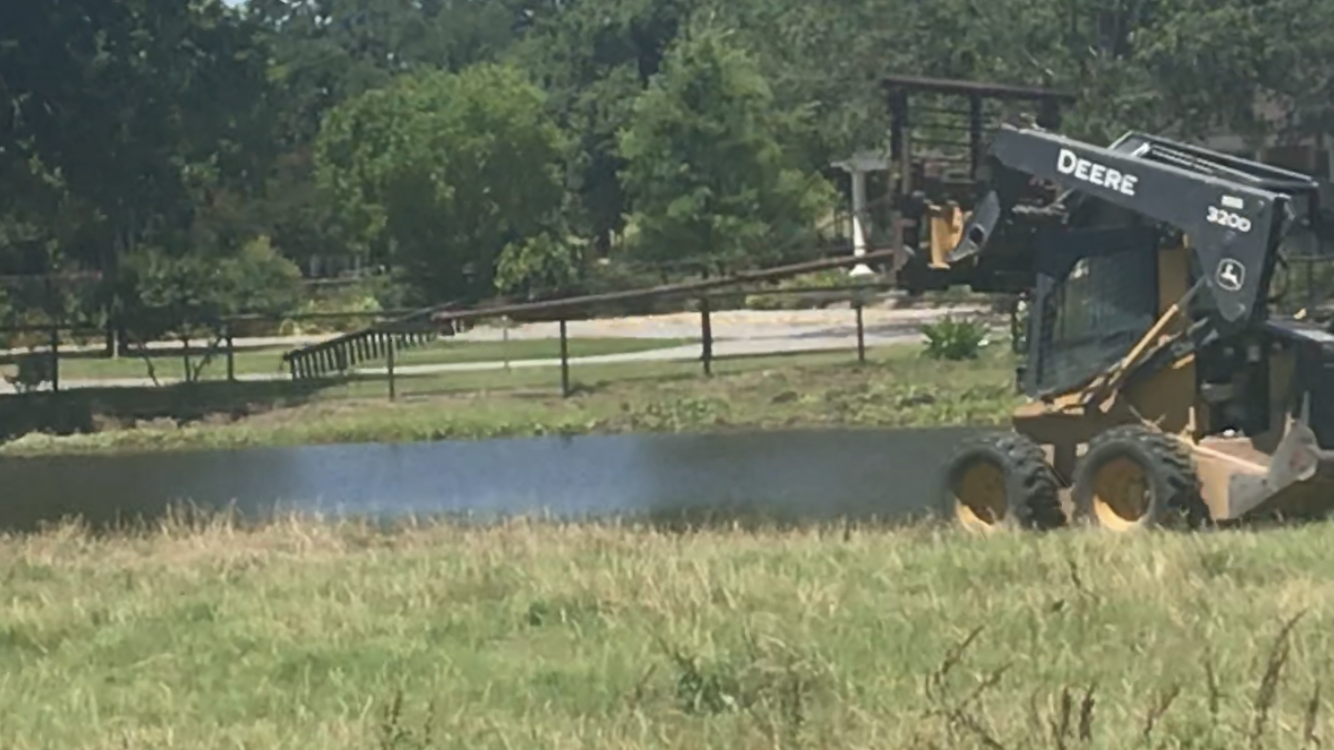 Stepdad has always been the inventive type. He built this rake and boom to drag weeds out of the pond.