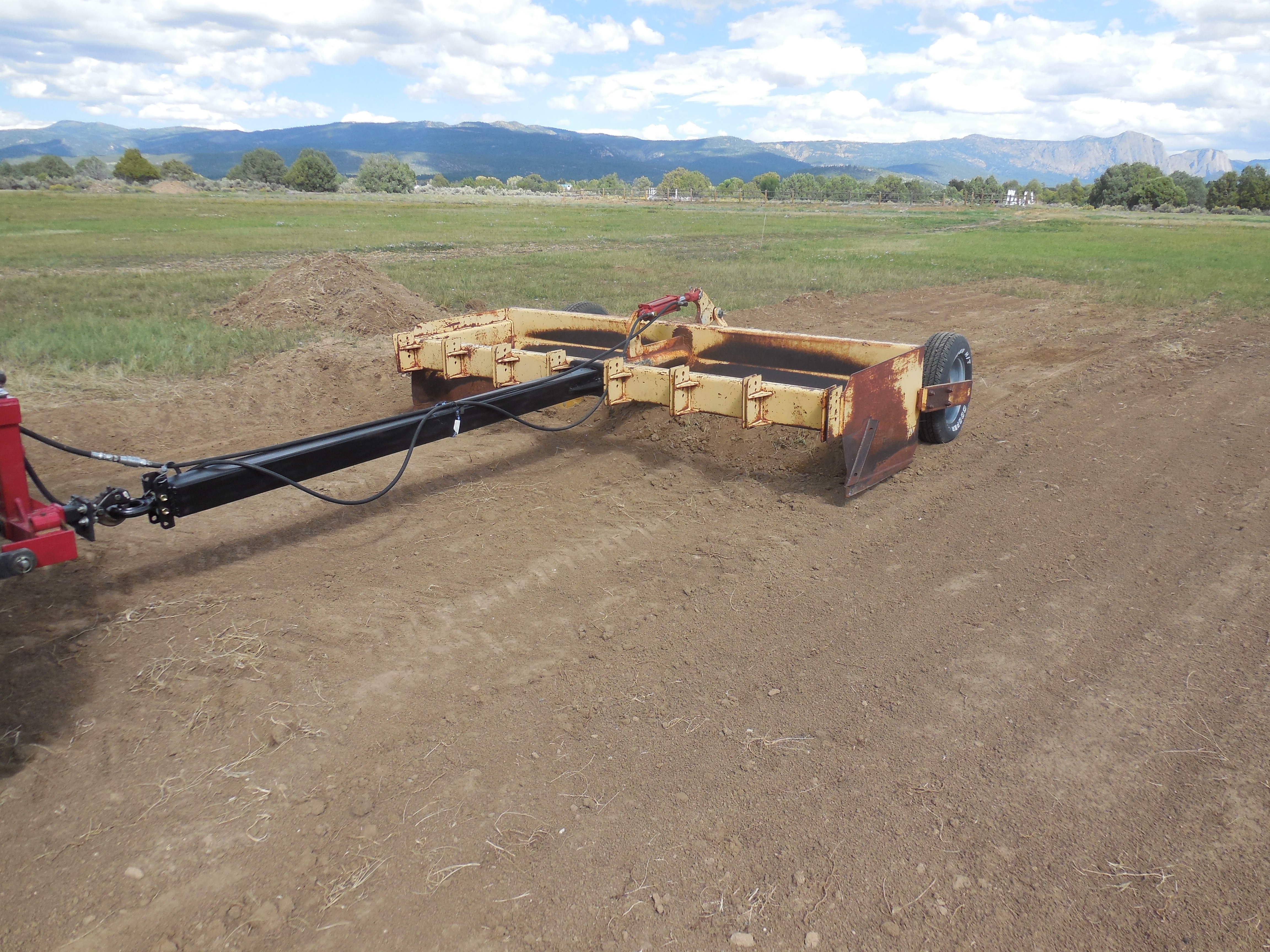 For leveling dirt, gravel, etc. I much prefer using the tractor pulling one of these two.