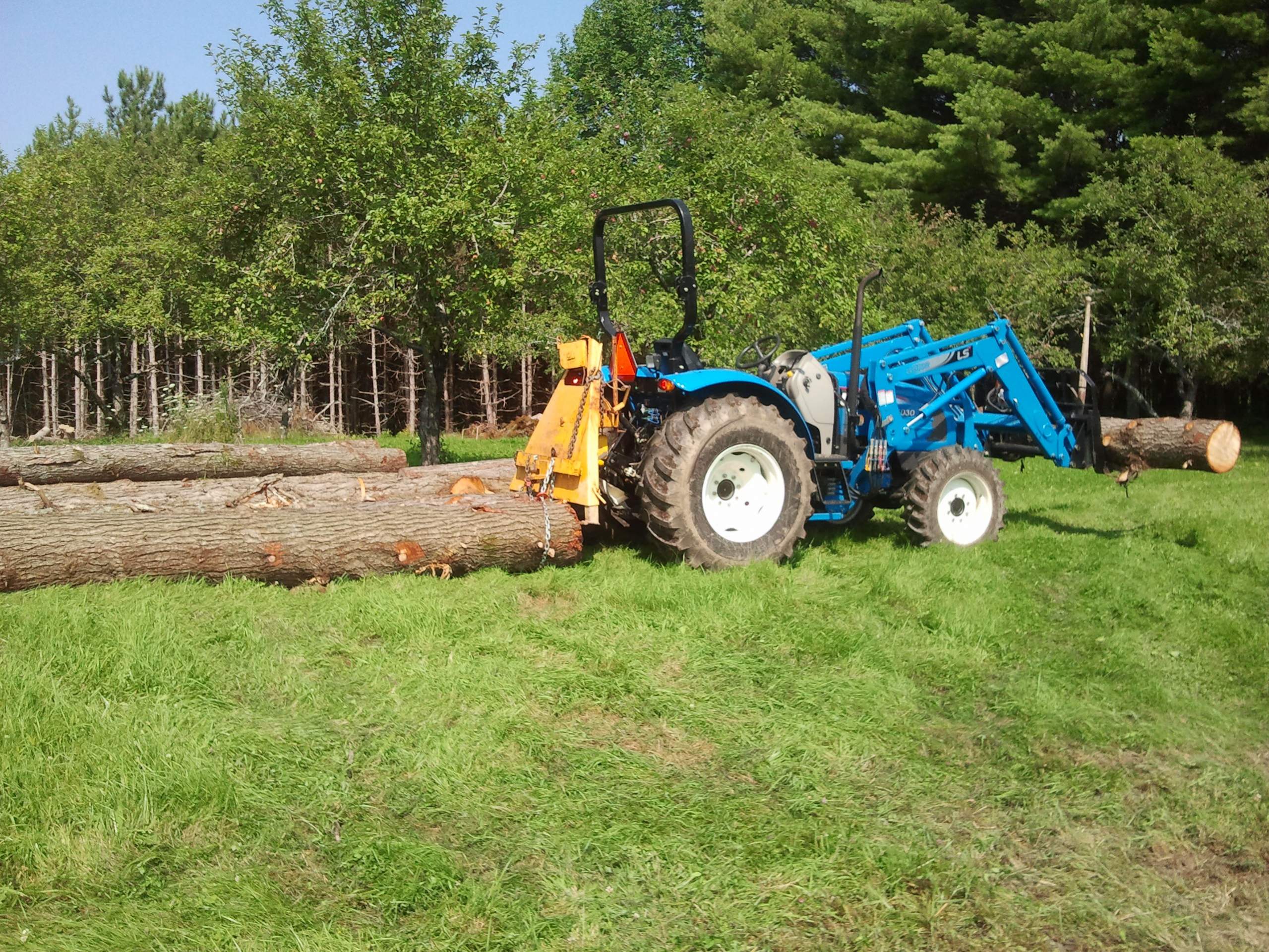 I don't see tractor logging as a viable solution for a crew. If you're pulling that much wood, you should pony up for a skidder since they'll handle more per turn than any utility tractor and they're purpose built for keeping the driver safe and moving lots of wood.