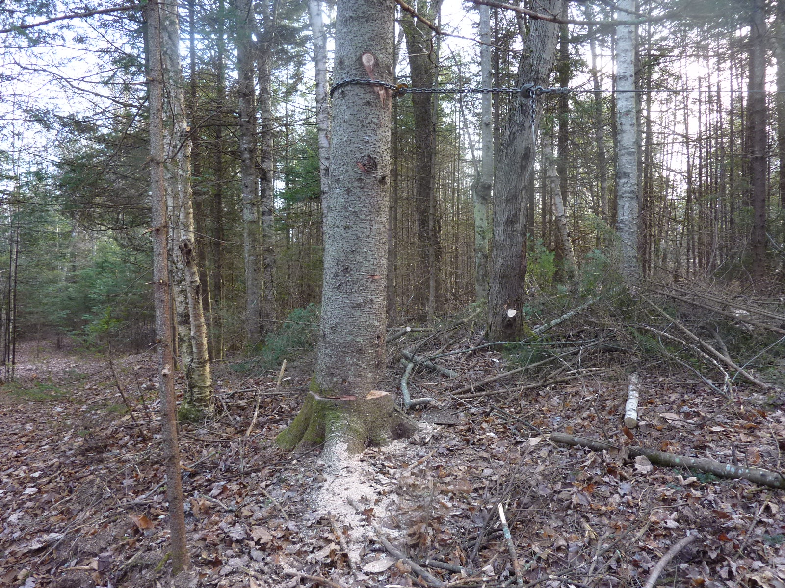 Gordon, since you have a lot of stump rot I suggest that you set up your notch on the outer edge of the tree and then bore cut to finish up the hinge. That way you are sure of what you have for hinge wood. A hinge in the middle of the stump is pretty weak when placed in the middle of a rotten stump. All the live wood is on the outer circumference. I learned that in GOL training cutting large hollow beach trees.