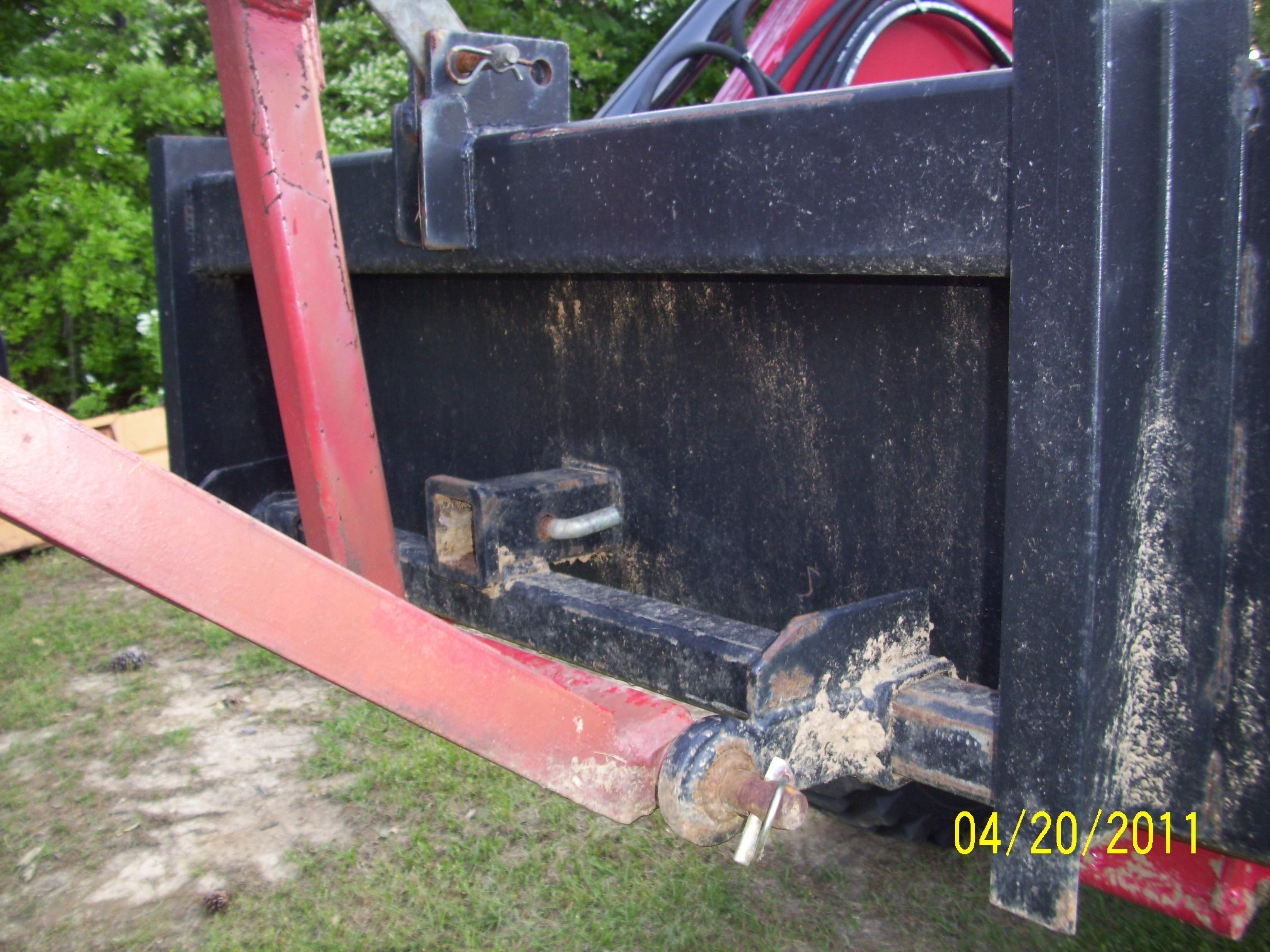 This adapter allows use of just about any non-pto driven attachment on the front of tractor. It's original purpose was to enable me to use 3 pt implements on the skidsteer. Now that I have the new Mahindra with SS quick connect, I am able to share many SS attachments that I had, like the 8' boom pole in the picts. Please excuse the rust/mud. I have since cleaned and repainted it.