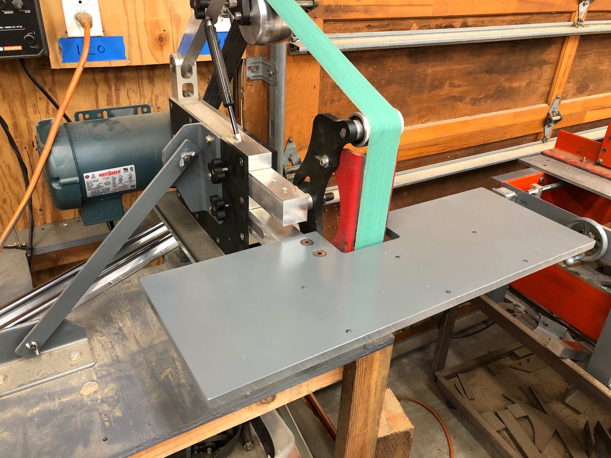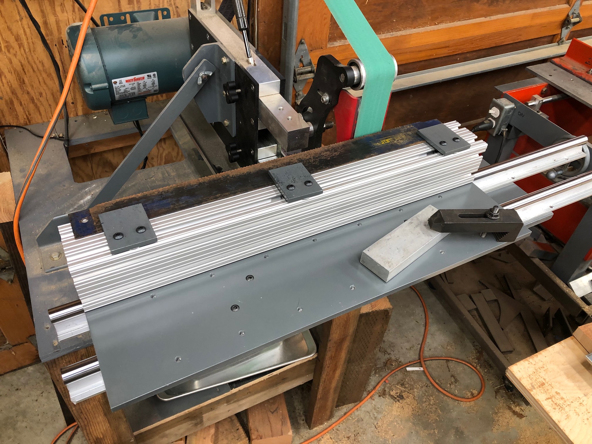 I use a 2x72 belt grinder a lot, it is very versatile and powerful. I decided to make a sliding work table to improve accuracy on some operations.