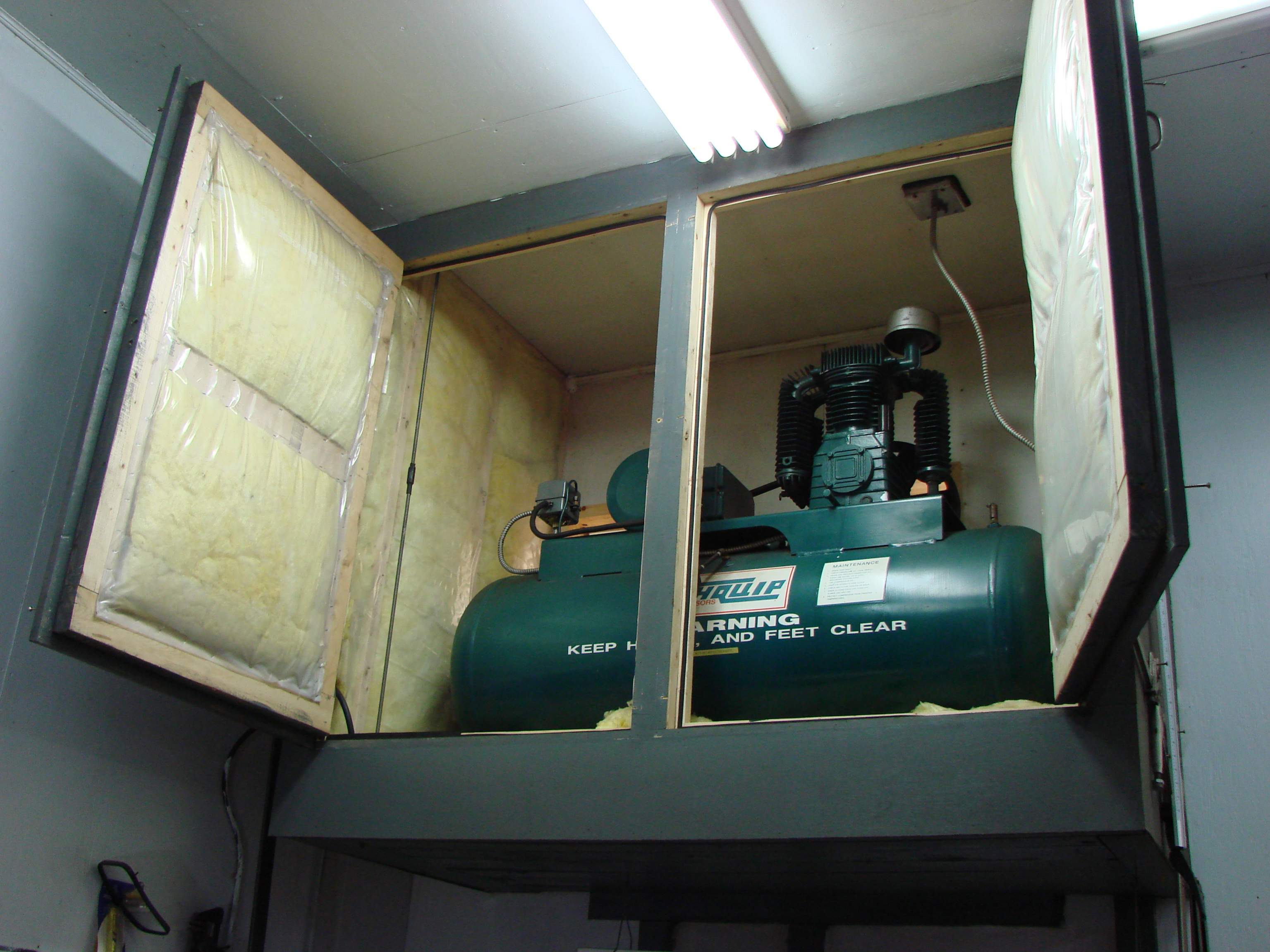 That room is a compressor room. I put the beast up there to have it out of my way and then built an insulated room around it. I put doors on it so it would be easier to service and it takes it's air from vents on the rear of the building. It's much quieter this way. I snapped a few photo's of it for your entertainment.
