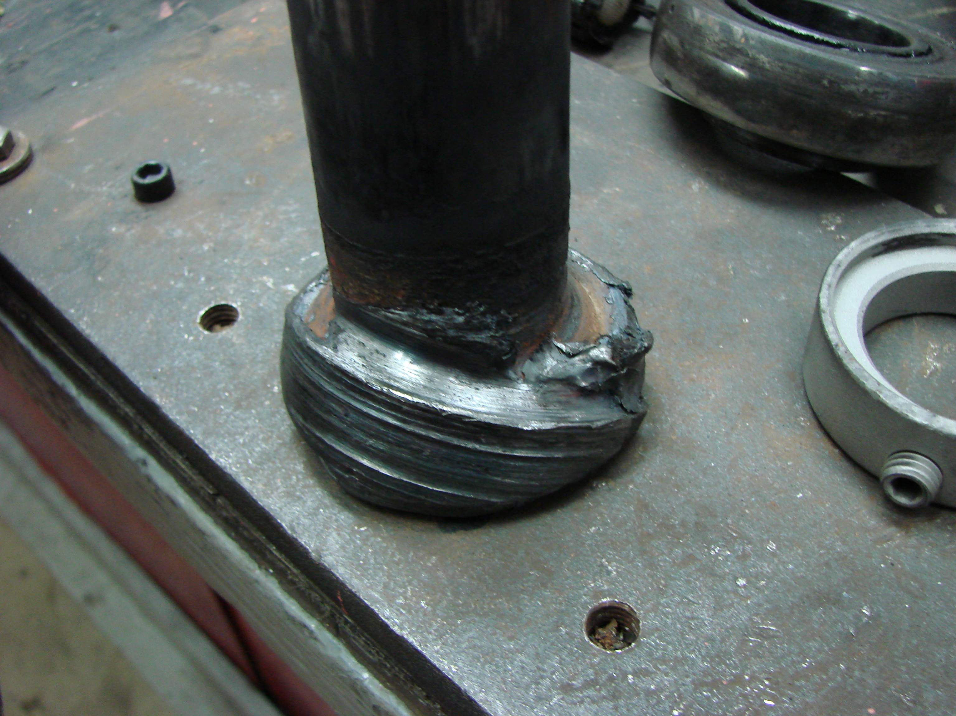 Very nice repair, Paul! Looks like you're "brain fart" did the trick. Nice work with the lathe, positioner and welder!:thumbsup::thumbsup: