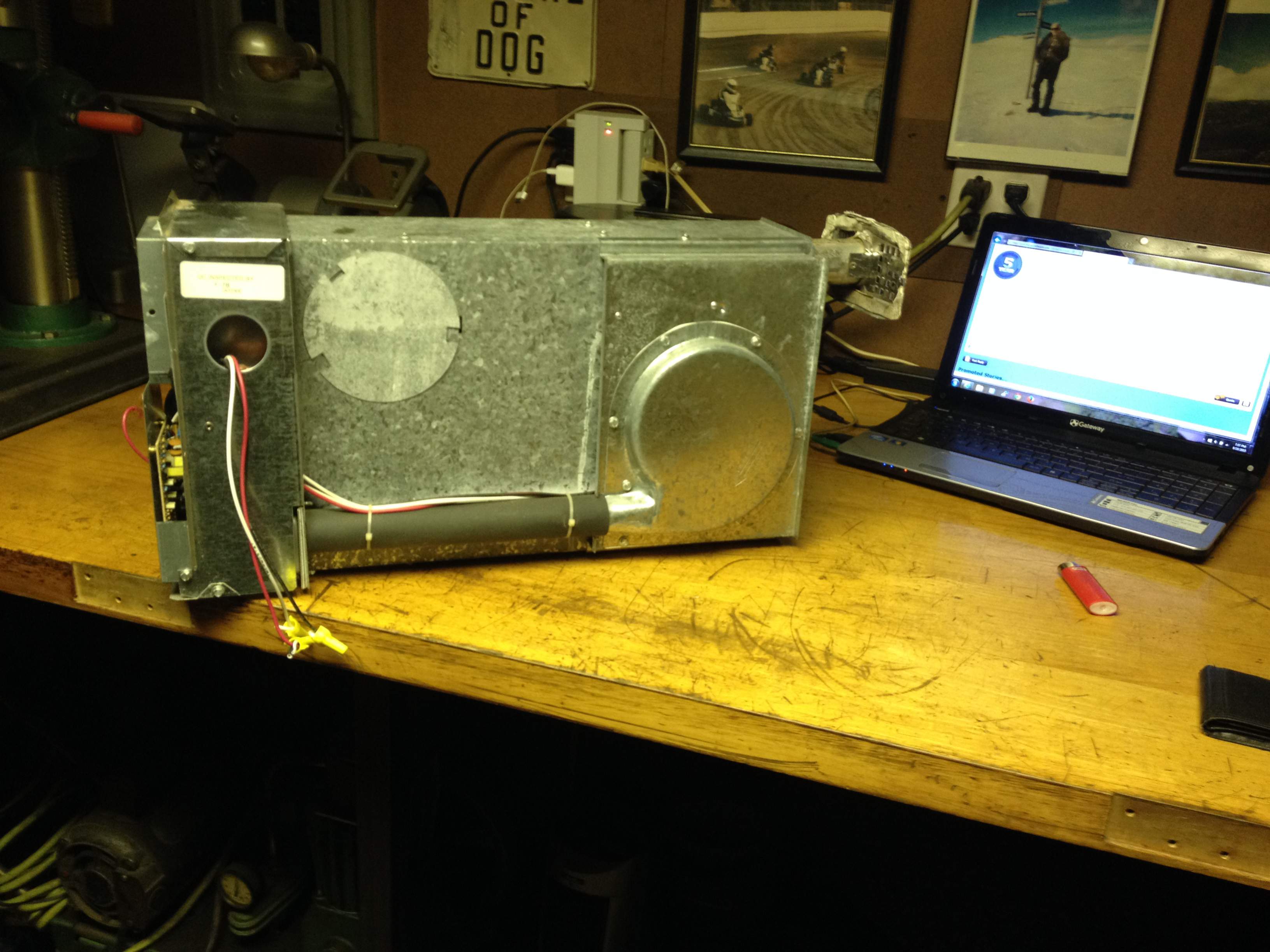 Design was a double walled system that isolated the combustion chamber from the hot air chamber. Safety shut offs, over temp protection were also incorporated. All stainless fabrication, and glow plug ignition system.