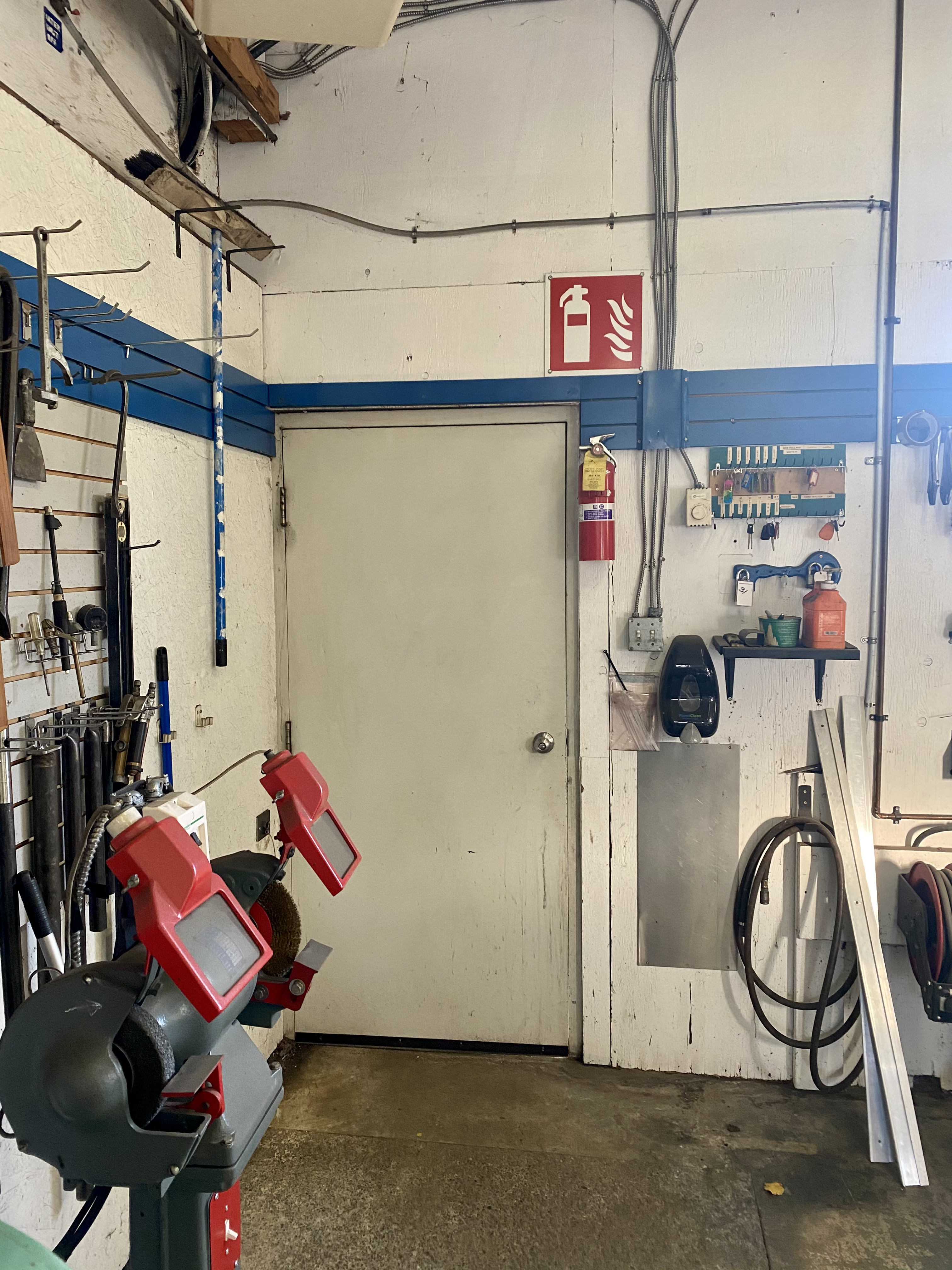 Fire extinguisher is very important. I have mine where I can get it on the way OUT of the building. .
