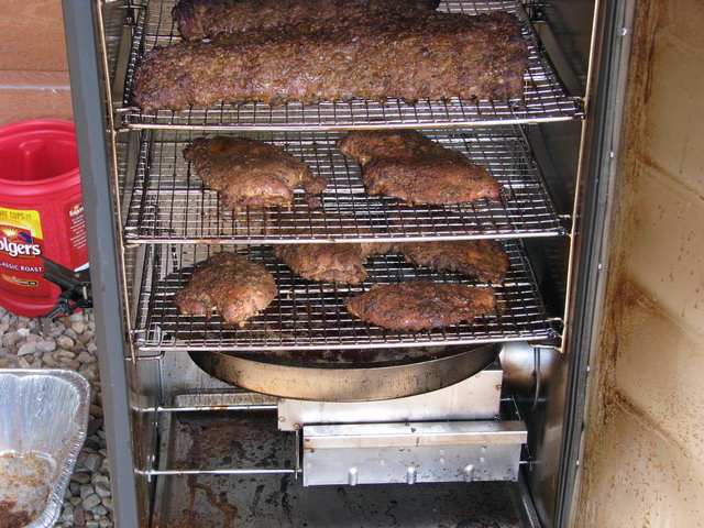 That looks good, Jim. I think the electric has some definite advantages and is probably easier to regulate the temperature. I considered an electric, but our house is total electric. There's not even any gas main anywhere in the area. So I decided a time might come when I wanted to cook something during a power outage, so I went with propane smoker and grill.:D