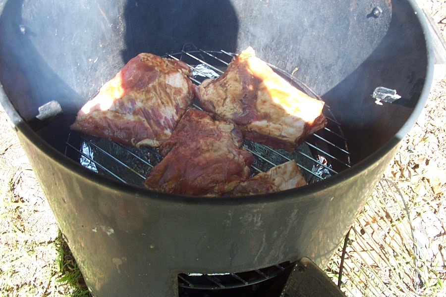 Steve, my smoker is on a patio in a breezeway, so it's never in the sun. Wind can make it a little more difficult to control the temperature, but I do the ribs at 250-275. But I have a simple spray bottle and mix one-third each 7-Up (or Sprite), water, and red wine (burgundy or sangria) and I open the smoker briefly about once an hour and spray a fine mist of that mixture on the ribs. Now I've eaten some ribs in restaurants that I thought were better than mine, but last week when my wife was telling our younger daughter about the neighbors' ribs, our daughter told my wife, "Nobody does ribs better than Dad."