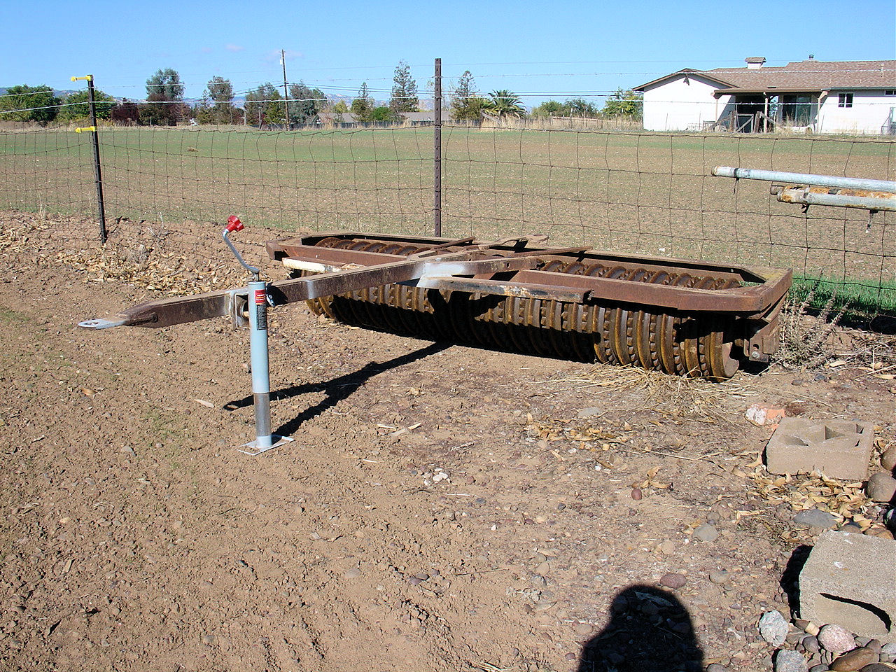 The next step is some sort of drag. I took an old beat-up spring harrow and welded a 6" drill pipe to the front of it and a very heavy logging chain to the rear. It is ugly as sin, but works very well at breaking clods and leveling in a couple of passes. (I once tried chain link fence on the bottom but it soon broke and wadded up.)