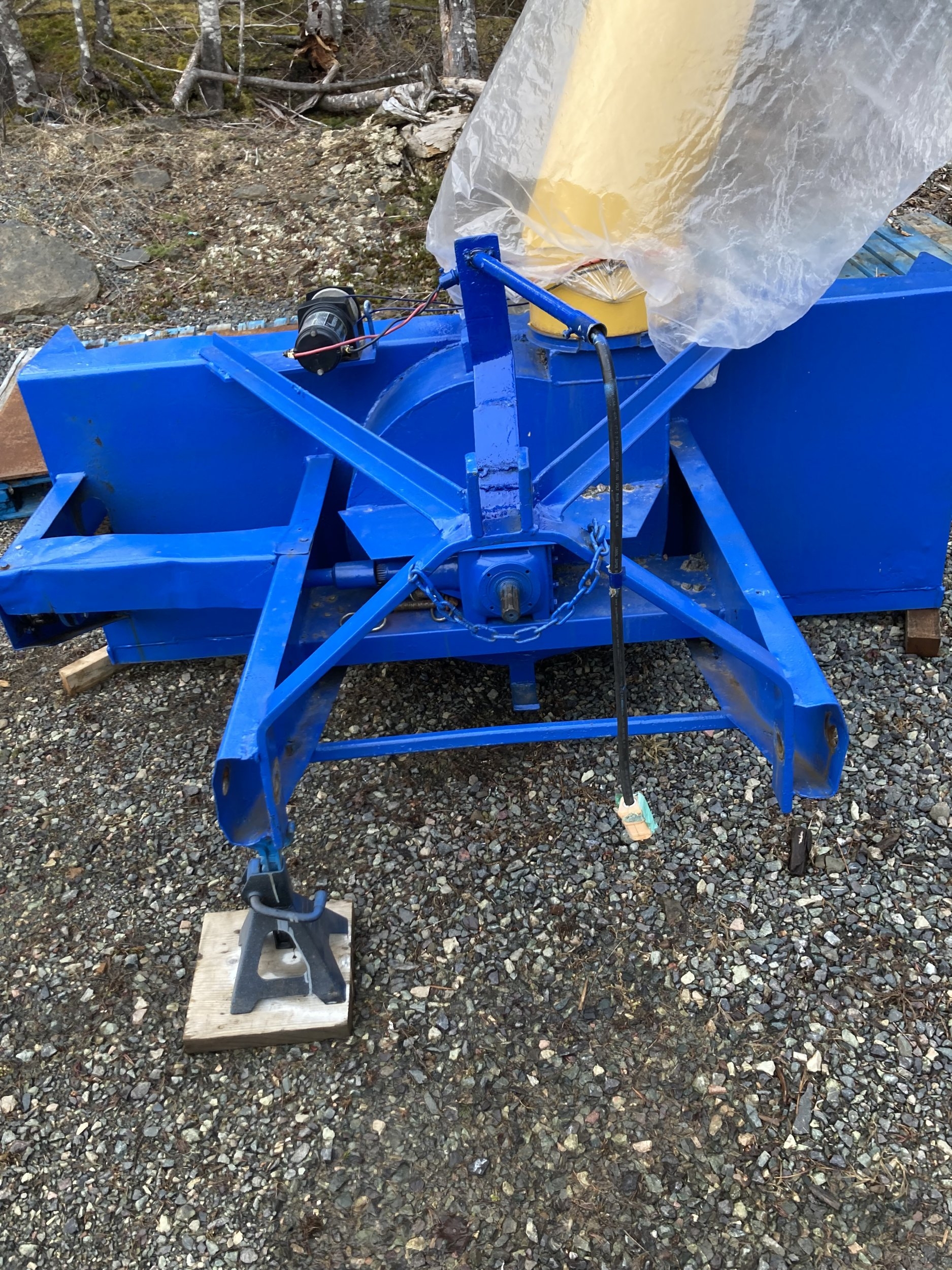 I bought this 6 ft blower a few yers ago , i removed the crank handle for the chute and installed a 12v winch. the blower works great but there's