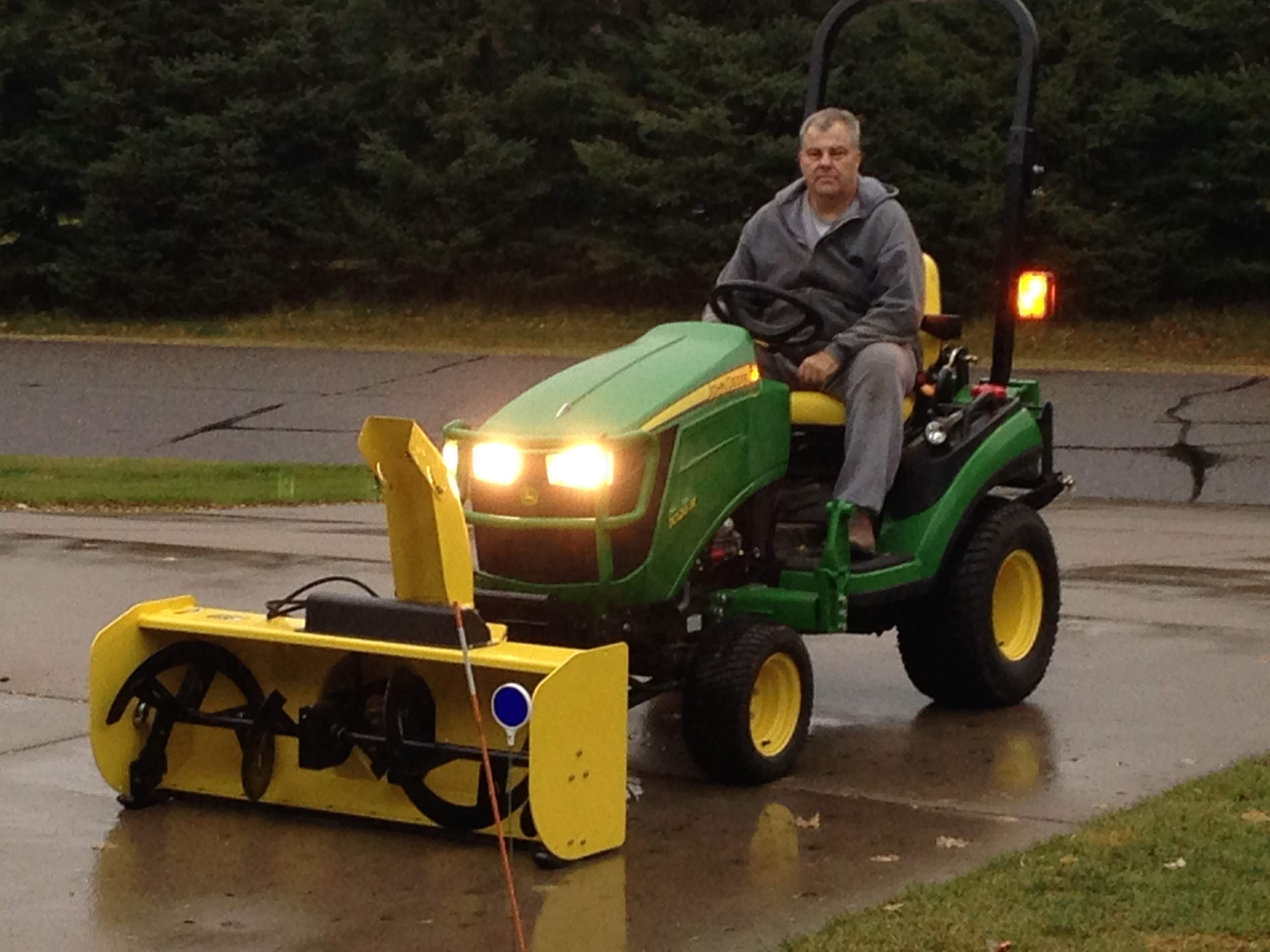 My drive way is black top in very good shape, but a decent grade and I have turf tires on the JD.