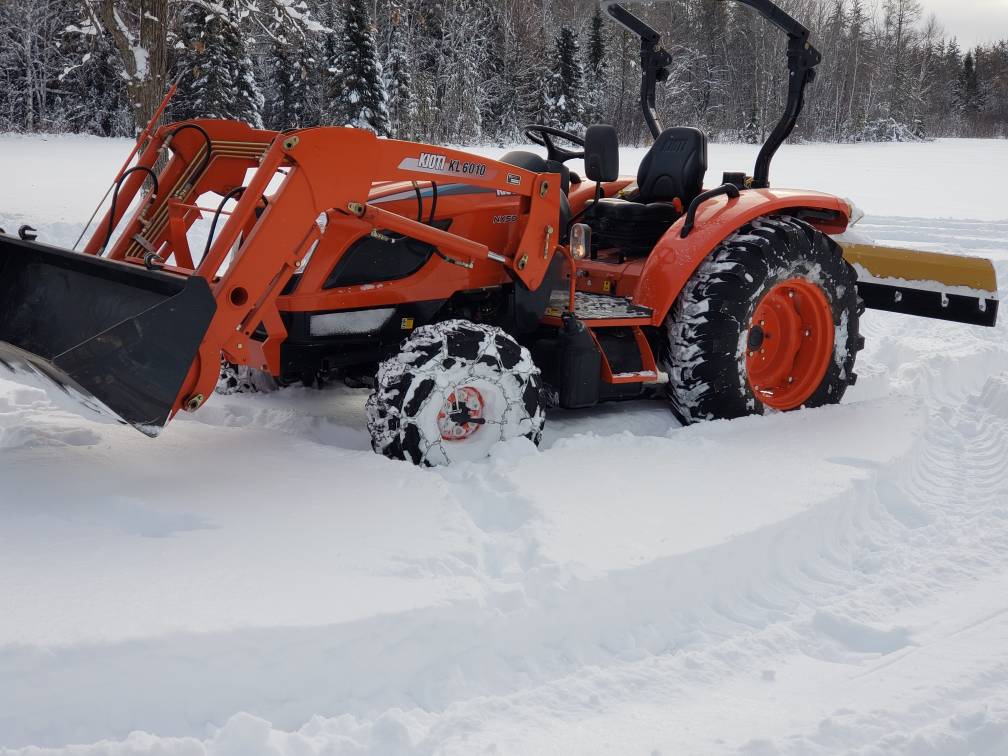 I have a FEL mounted 73" front blade with hydraulic angle and tilt functions. This is on on a New Kubota B2650 and used on a new gravel driveway. I live in Minnesota.