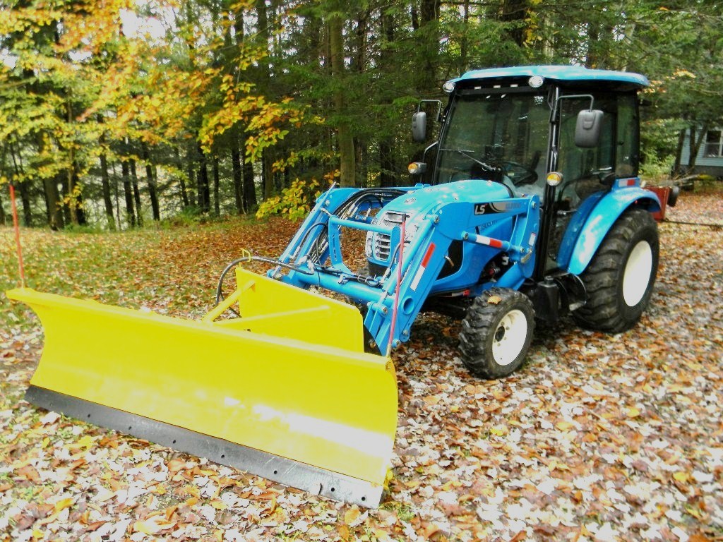 I have a 7'6" pusher and a 7'6" power angle plow. In my area of Upstate loaded tires, chains and rear ballast are a must have for deeper snowfalls. For lighter snows I don't put the rear ballast on. My pusher has an adjustable height steel cutting edge. I have it set up a half inch so it doesn't dig into the gravel drive. Same with my plow. The shoes are set so the cutting edge is also up 1/2". I also made and installed an adjustable back drag blade on the pusher shown in the third pic.