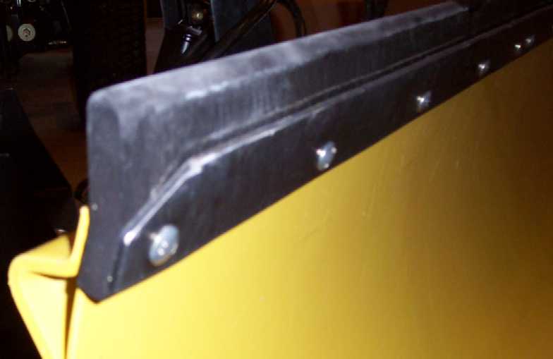 Blade is upside down for these pics. This shows how the extra width of the squeegee keeps the metal cutting edge at least an inch away from the concrete/asphault. I don't even feel the seams in the pavement. In float position the pavement is cleaned very well in one pass. I imagine a great combination would be both a front blade with squeegee and back blade.