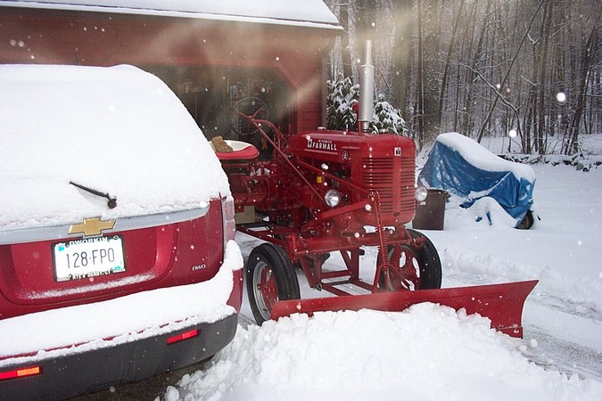 nice lookin job, if it plows anything like our '45 A, you'll push more then ya wanna walk though...... ours has been happly pushing for 4 generations now. 2wd works fine, with enough weight, the front tires don't touch anyway lol