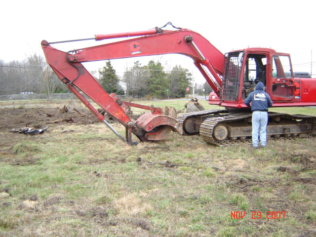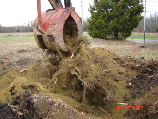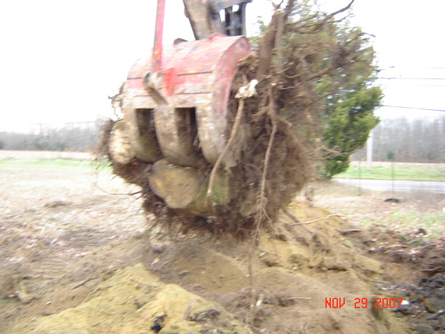 So I had a friend of mine over today with his machine to get a pile of of old foundation & a few root balls removed.