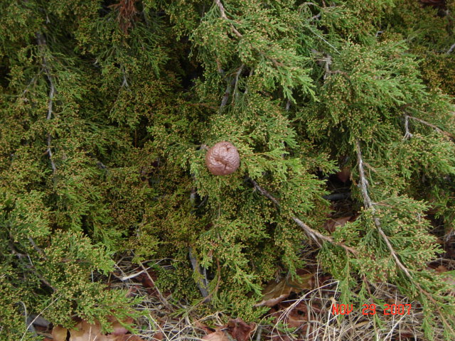 Pic #6-7: Found these "things" on the one cedar we removed. The pics are not that great, but they are brown "things" about 1" diameter, & were pretty high up on the cedar. Anyone have any idea what they are, or what made them?