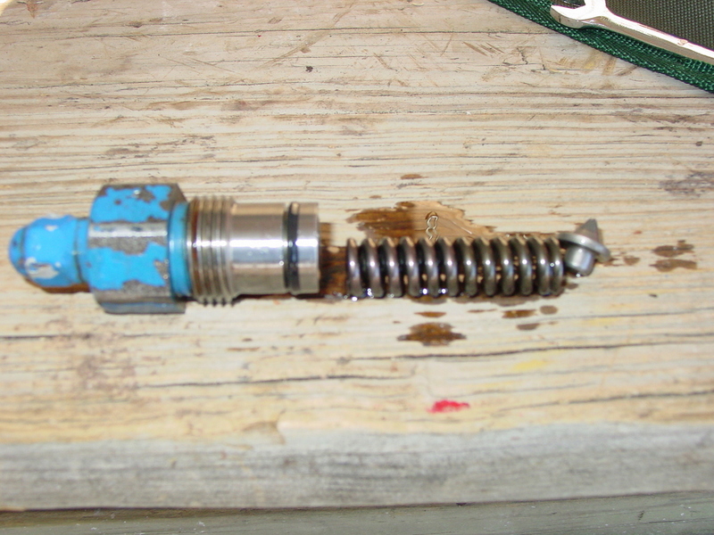 4- Right at the housing there is a spring that sets your system pressure with a conical poppet valve, that would relife the pressure. if it is stuck at the open pressure it can relive the hyd fluid