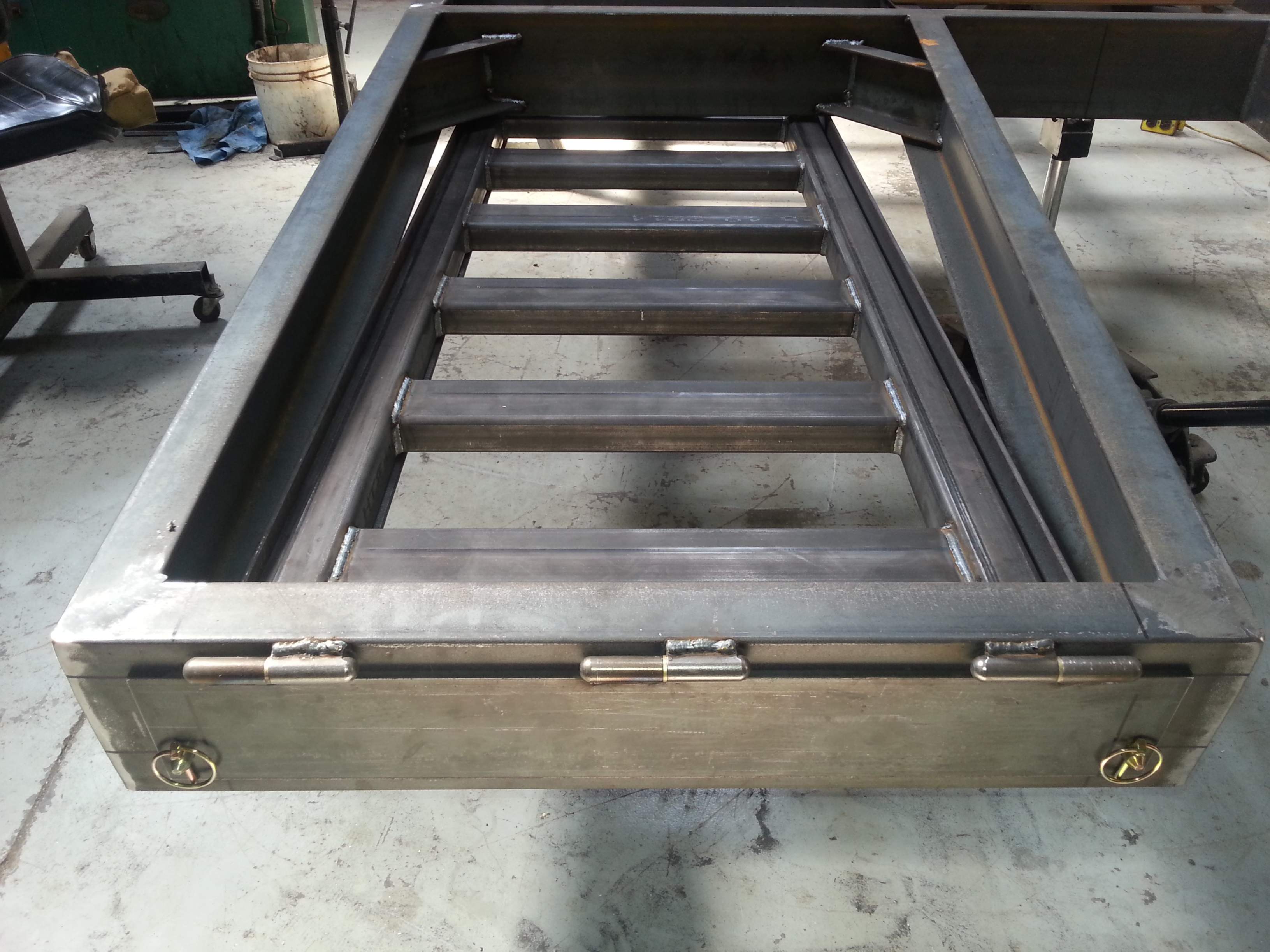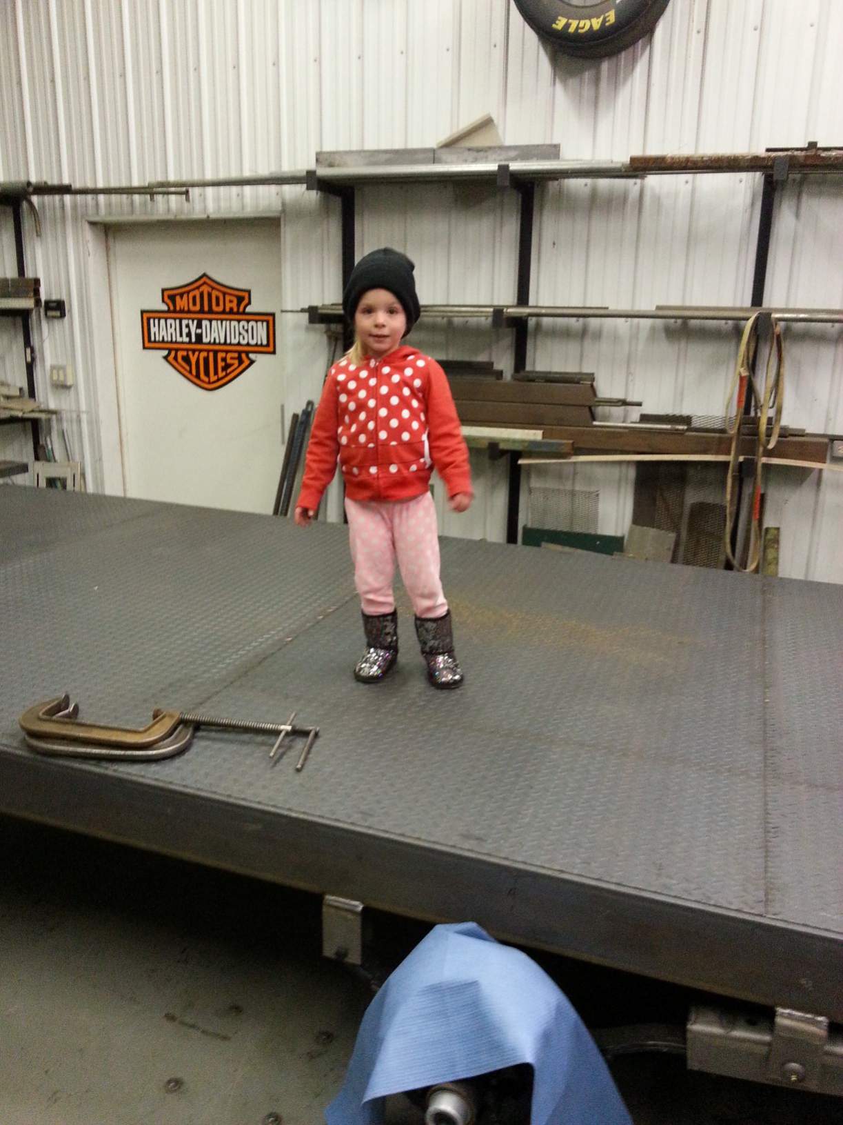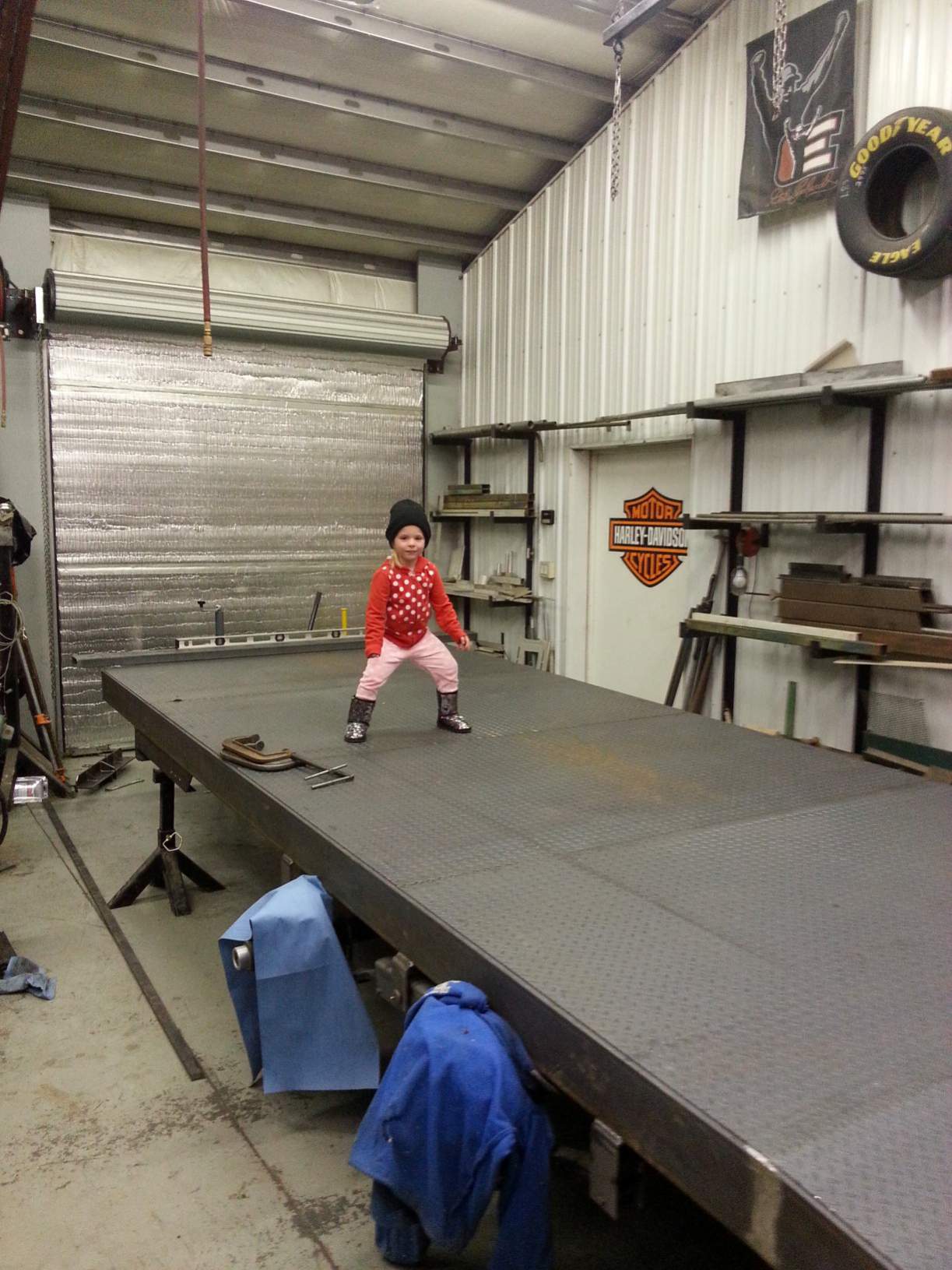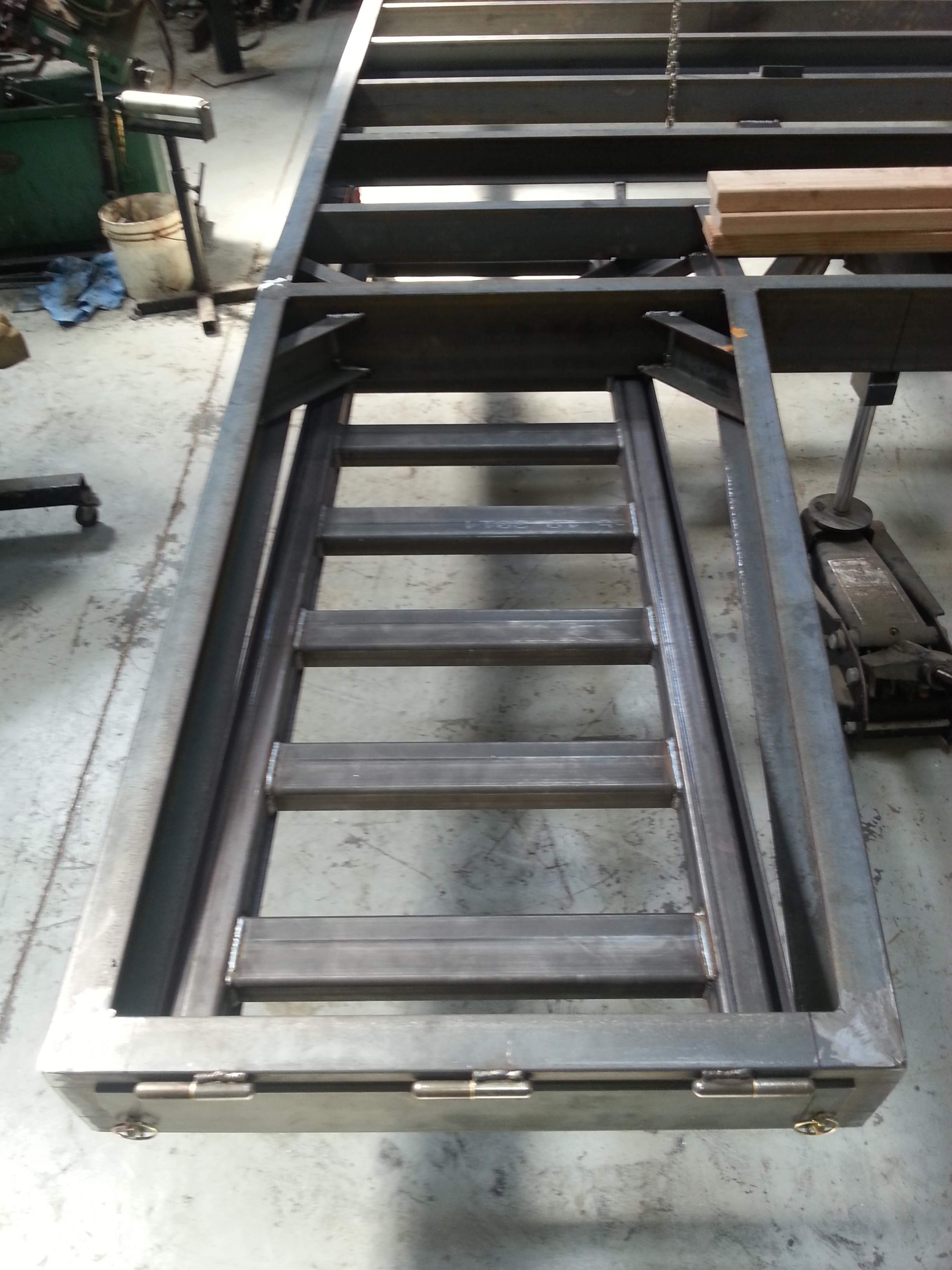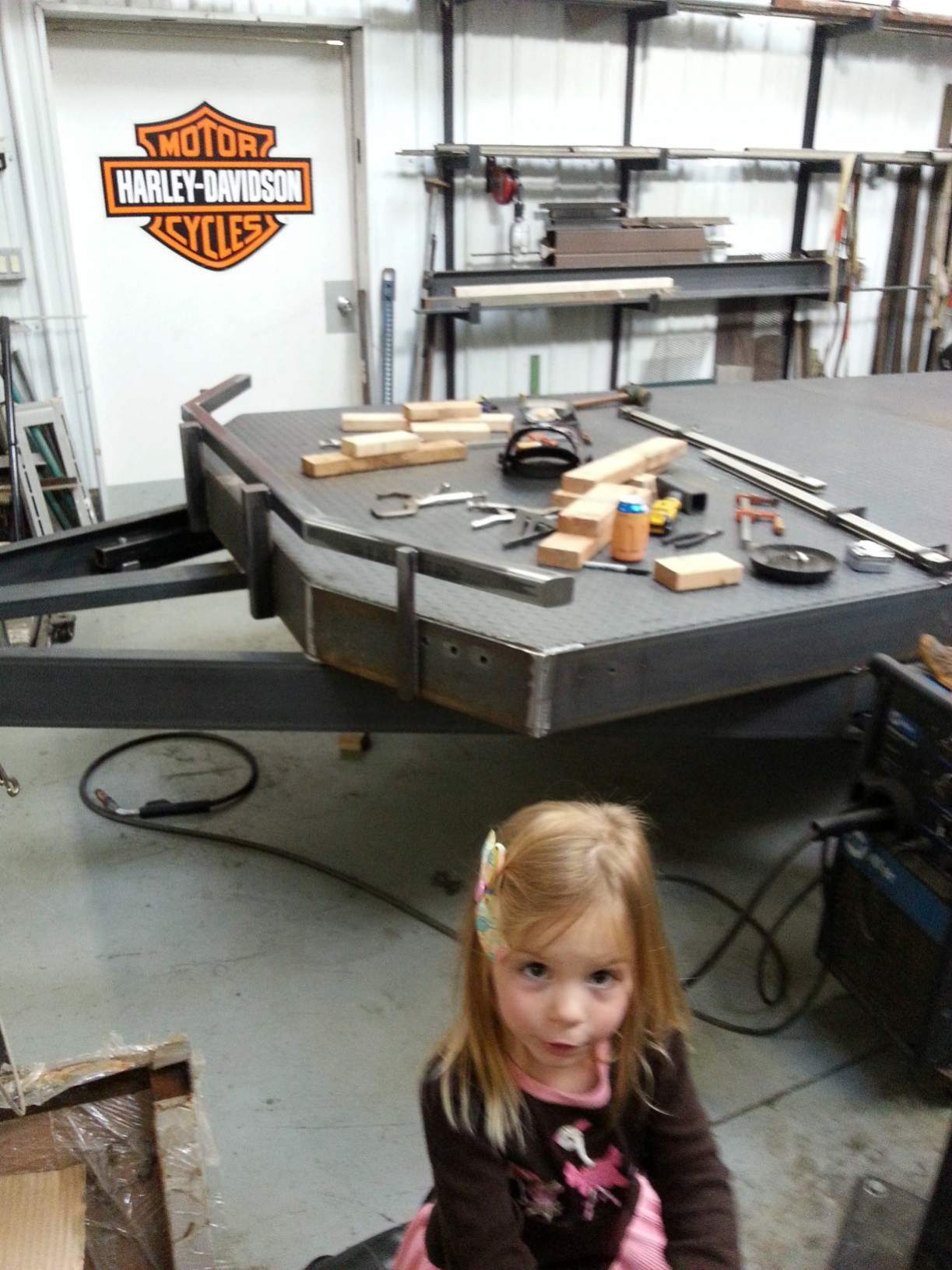Trailer is skinned. I used 14 gauge diamond plate for the decking. I used five 4x8 sheets. The cuts were made with both a cut-off wheel and my jigsaw. I used a whole tank of shielding gas welding the plate on. I used 1/2" metal for spacers on the cross members to level the plate to the outside frame.