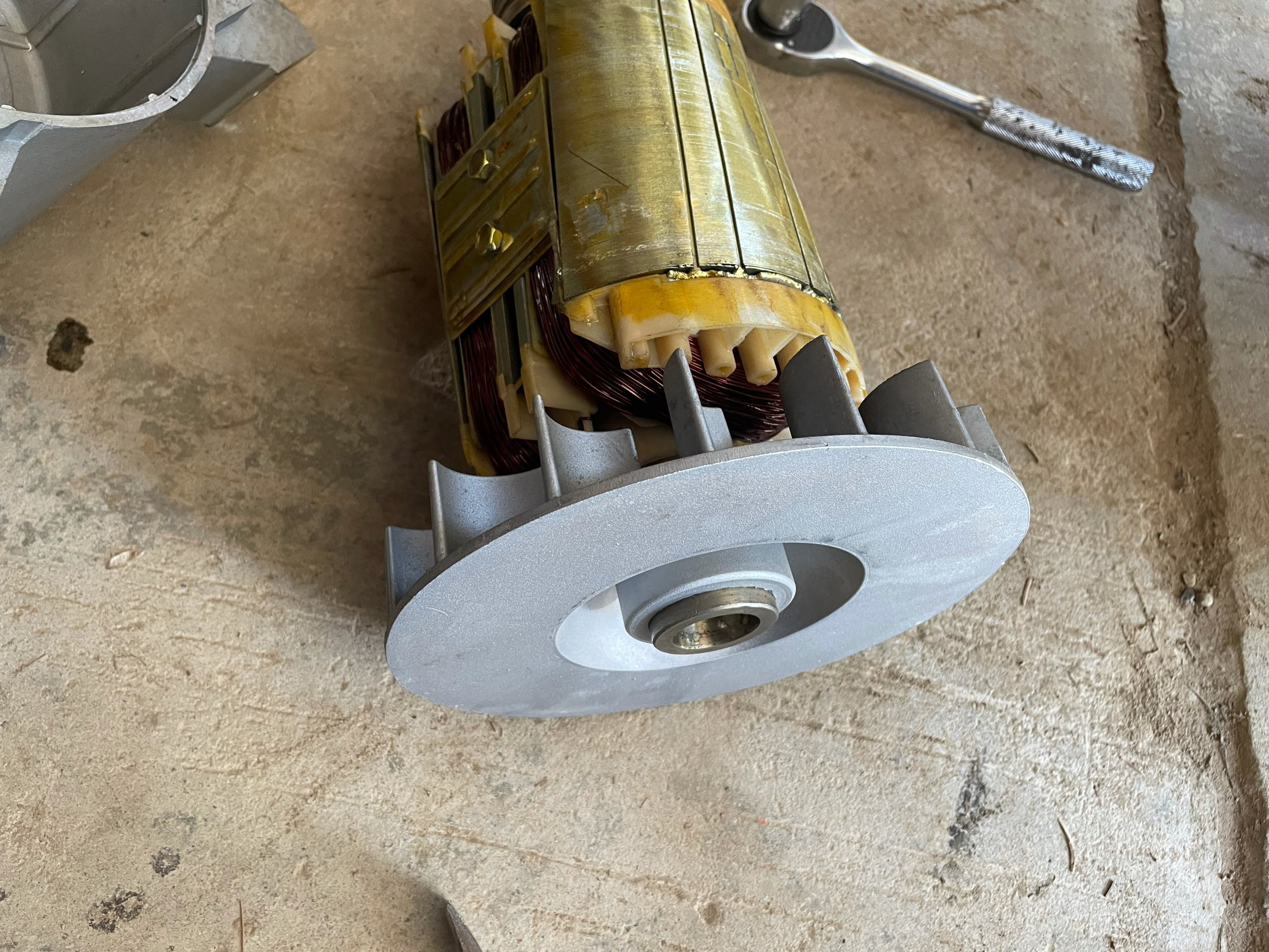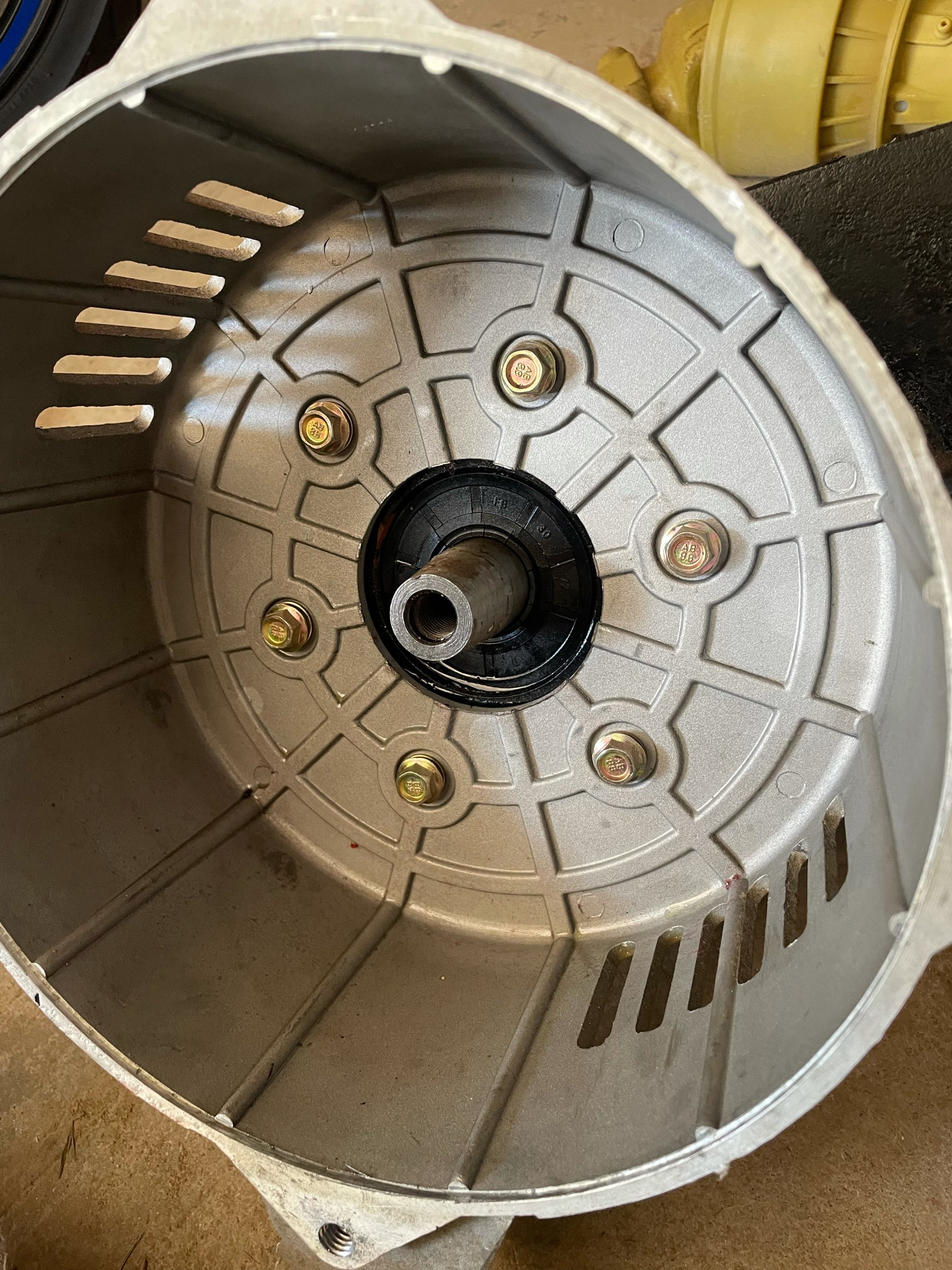 There is a large bolt running through the rotor shaft remove it (image 2). This is what holds the rotor to the pto gear box. It’s just a taper fit on the end of the shaft (image 4). Hint: You could damage your brushes if you don’t and also pull out the whole rotor J.