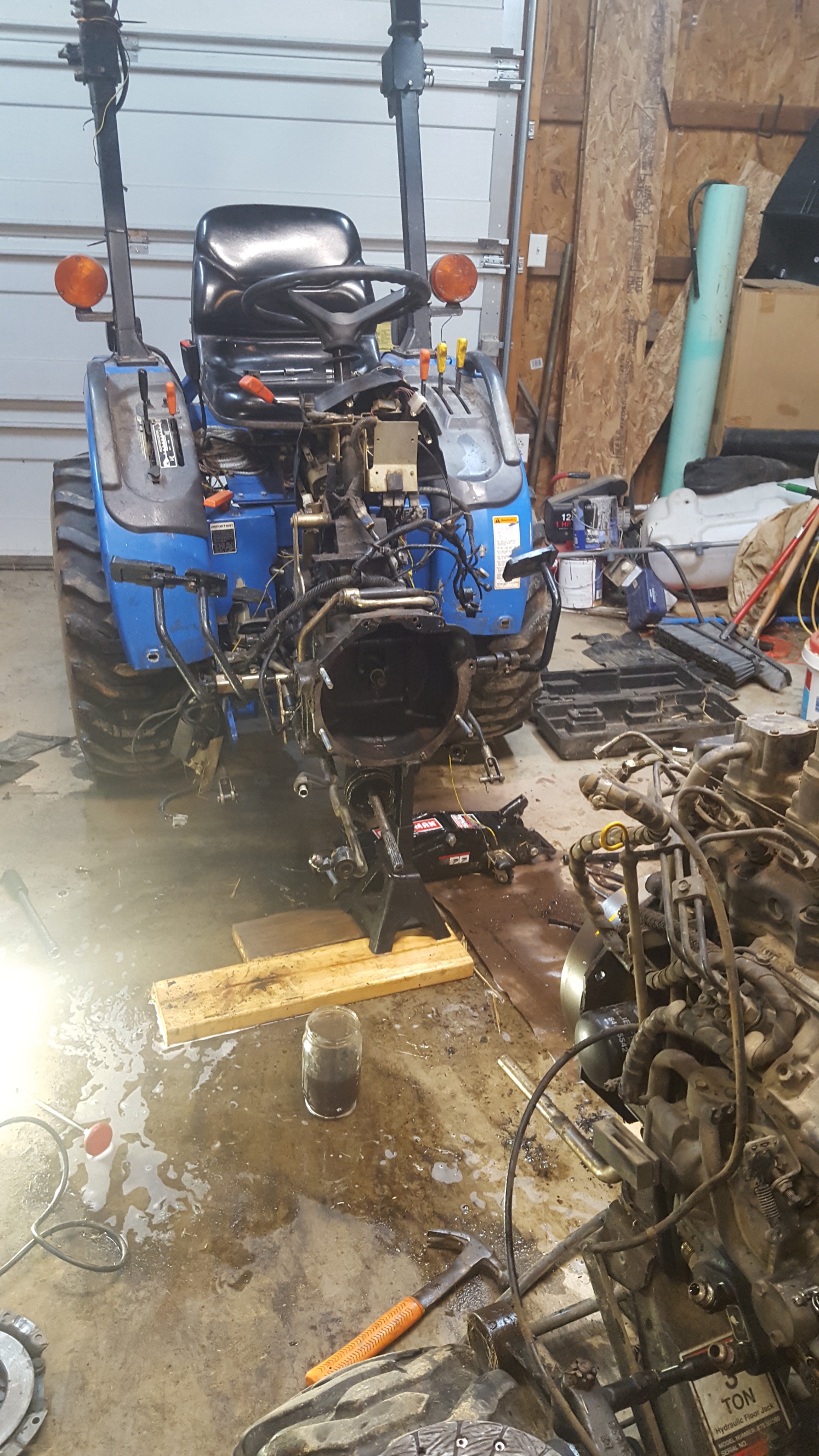 I've now split my TC24D twice - and I've never split a tractor before. Don't let anyone discourage you, it can be done. I've been there, done that, and have the t-shirt to prove it. First, I didn't (and still don't) have a cherry picker. First time I split it at the hydrostatic pump because it had a major leak. This last time earlier this summer, my clutch springs shattered and I couldn't disengage anything.