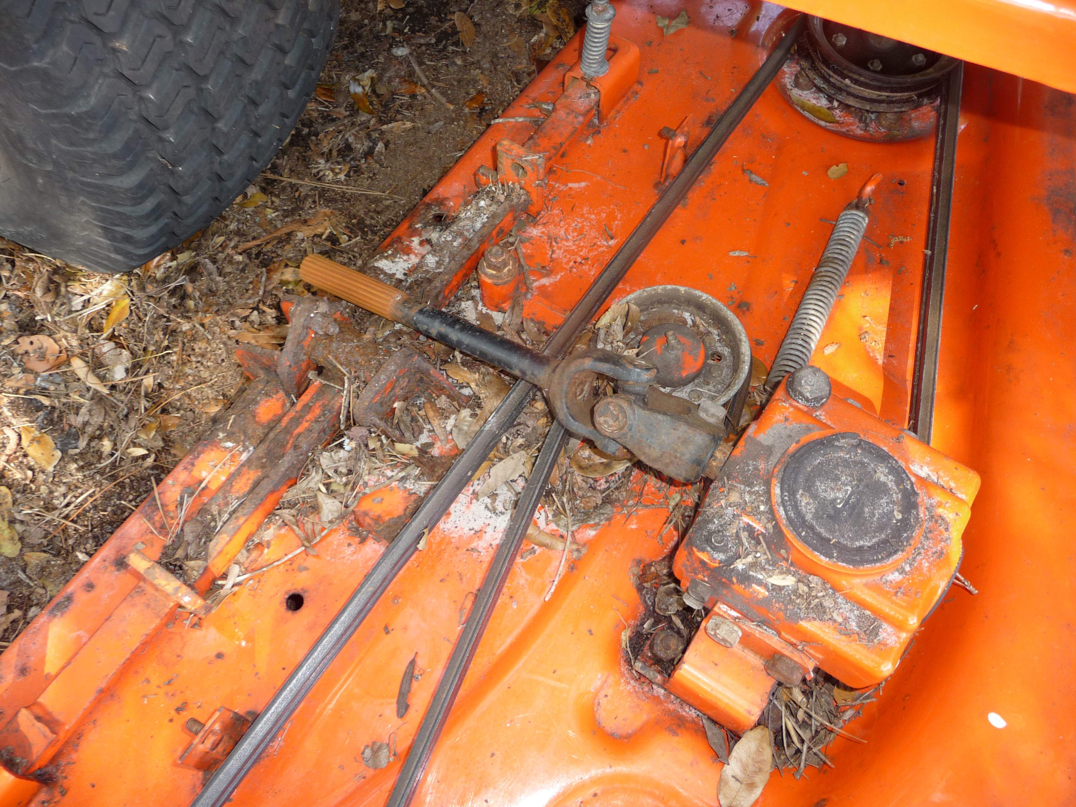 so I tok the deck off to wire brush then pain as I bought some kubota orange paint at ts and when I got the deck off I found this