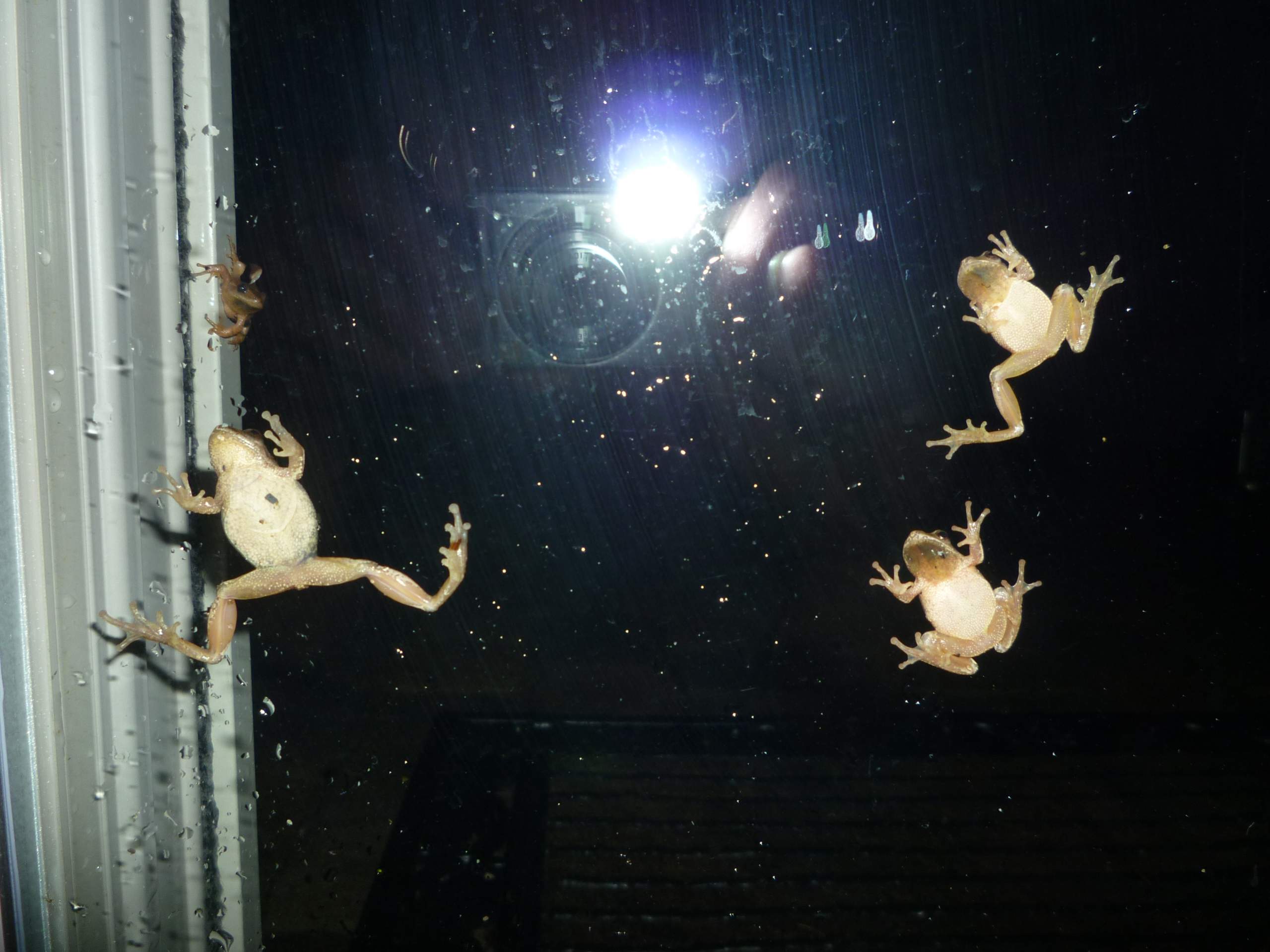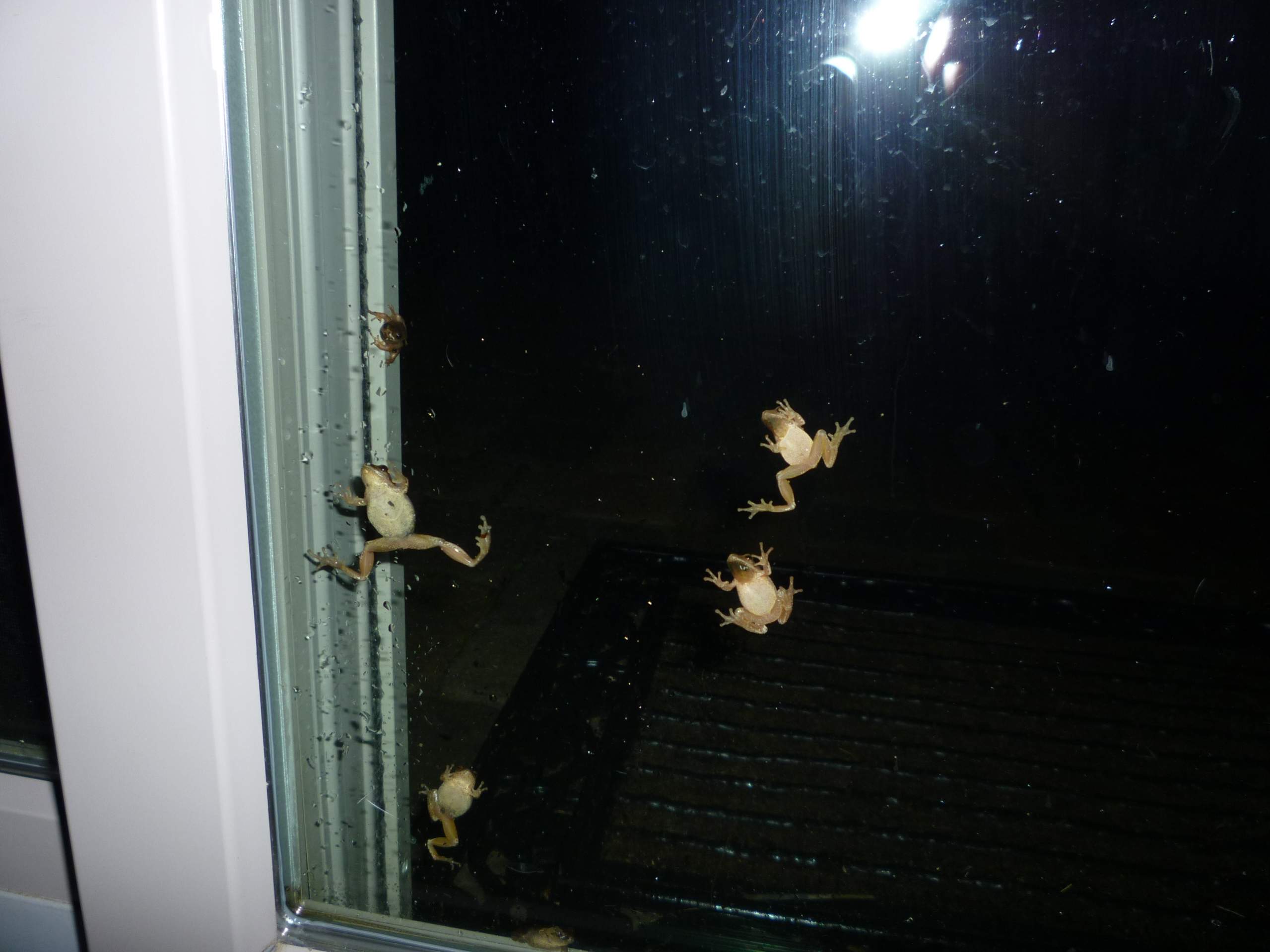 In the other thread about our first signs of spring, there were several people who mentioned Spring Peepers. Last night during a warm 48* rain I noticed we had some visitors. We haven't heard any singing from Peepers yet this year, and these little guys were doing more "peeping tom" action than anything.