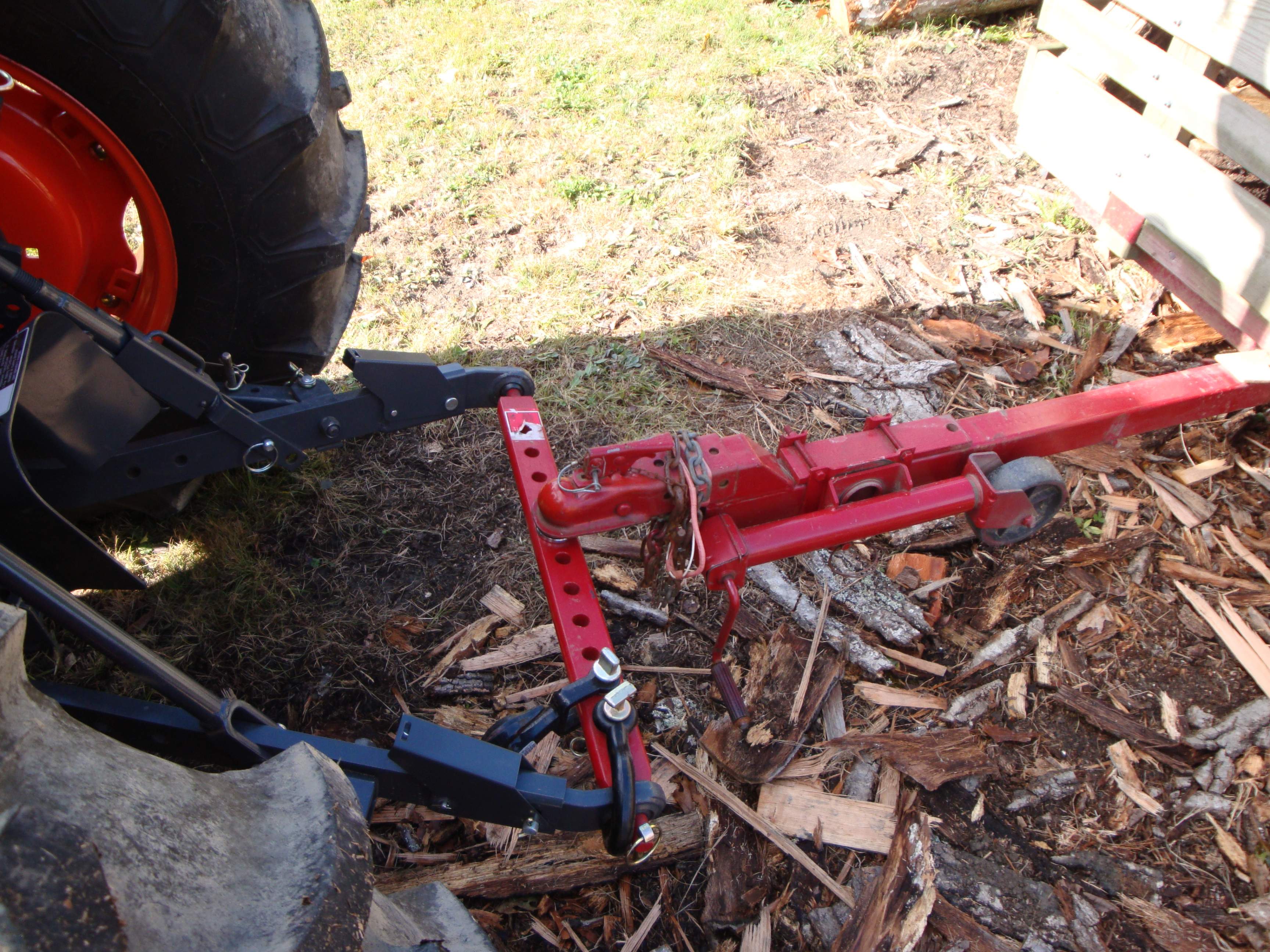 I have an A-frame hitch I bought from a business around here called Redland Hill (I think...) which they modified to make it cat 2, and reinforced it so I could haul my 12K dump trailer around the property for brush and mulch. My tractor handles it beautifully in my fields as I have a JD 5210. Before I dump, I lift the 3 pt hitch to it's highest position in order to further increase the dump angle and empty the trailer more efficiently. This item I have cost more because it was custom made and reinforced, but their handihitch isn't too much more than buying some brackets from TSC and compromising with what you're trying to do. I think I stumbled across them on ebay, but then I discovered they're local and dealt with them directly. Good people.