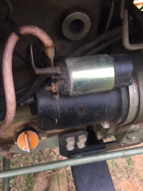 Shut off tractor to open gate and pass through. When I went to restart (it always has started immediately) it kicked over and then it all went went south. Instead of chugging and turning the engine over the starter was running continuously, not turning the engine over. *Even when I shut it off and took the key out.* I wasn't too far from the house and after fumbling around I ran up to the house and got a set of wrenches. There appeared to be the beginnings of smoke in the area of the starter (which I could feel was spinning somehow) and I thought dang I don't need this to catch on fire. Disconnected battery and it shut down.