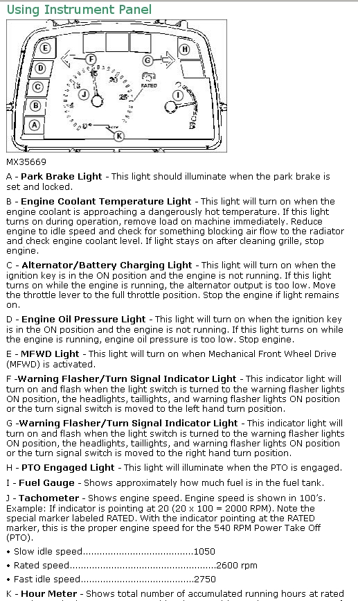 Note how the manual for the 2520 specifically does not show a preheat light, unlike the 2720 manual which does. Based on comments here I'm guessing earlier 2520 with the air heater did have a light, while later glow plug ones deleted the light, along with instructions on using one.