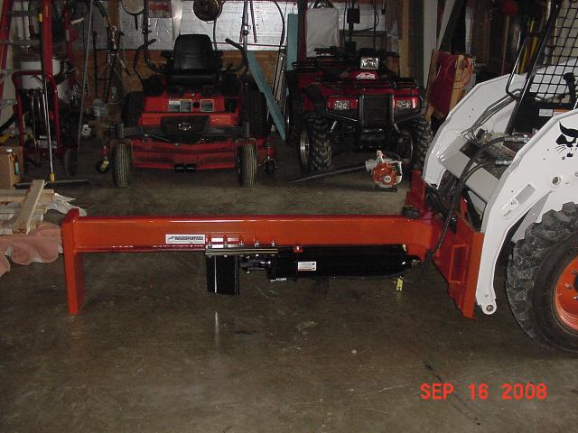 Mark--I am going to follow this closely, so take good pics. How do I 'subscribe' to a thread ?? I have a Bobcat 742B that would look awfully good with a splitter out front. My concern about mounting a splitter like a bale spear isn't so much about weight, as visibility. With the splitter mounted cross-wise, knife down, you would have an excellent view of each victim. Good luck, and several us are rooting for you.