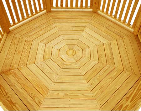 So I'm thinking of building a gazebo next summer. It'll be a 14' octagon about 8' off of the ground. I'm going to use steel tube on top of cement tube footings. There's going to be white lattice around the base and I'll use the space to store firewood. All the weight from the gazebo structure will rest directly on the steel posts. My question is about the sub floor. I was thinking of using C channel. Te flooring will be Tigerwood (to match my deck) and can span up to 24" between joists. This picture is kind of rough but it gives an idea how I was planning on laying out the c channels. The load this should see would be maybe 3000 lbs (12 people and the weight of decking) spread across the entire deck. My local steel supplier can answer basic questions about deflection but this is out of his comfort zone. Each side would be approx 6' and also would be c channel. This, of course, will be welded together. Only one channel will be a solid piece (it could be a S beam) but the rest would weld to it. I'm planning on welding a plate to the bottom of the beams where the joints are. So what size c channel would be needed?
