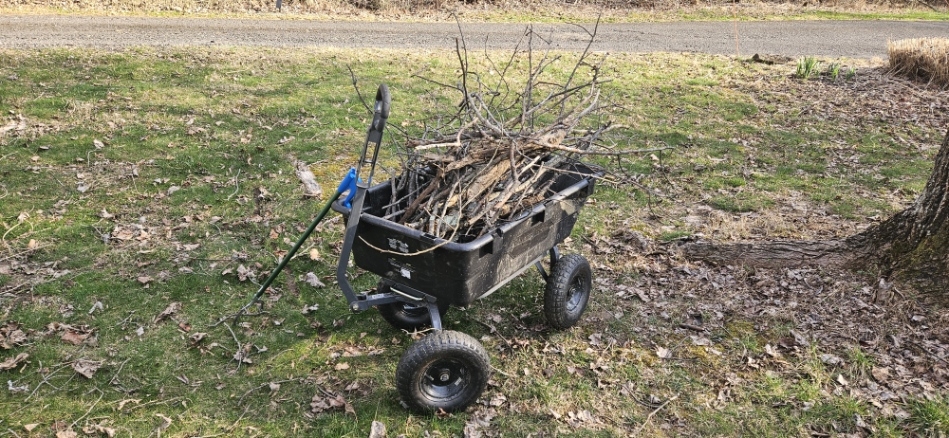 A small dethatcher, a blower and the Flail for larger areas. Most of my ground cover is fallen Ash and Tulip Poplar.