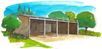The tractor will stay in the barn and so will the backhoe attachment, but I have a 6' BH, 90"FM, 6' BB, 6' Scrape Blade, Wood Chipper, Fertilizer Spreader, and 6' Grapple. I really don't want to put these out in the open and let the weeds grow up through them. I was thinking about a small low pole barn with all four sides available. This way the tractor can back up and put each item away without having to move anything.