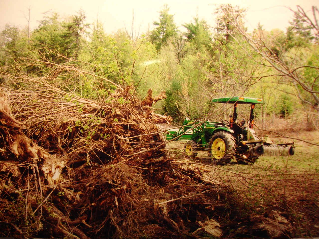 I had an excavator operator come by and remove a bunch of stumps. I tried with my 448 BH, but each stump took me a while to remove. The excavator ripped them out in 10 seconds and swung around and literally threw them in a pile...the same task would take me 15-20 minutes time. I had maybe 50+ stumps of various sizes removed...some of the root balls were 10' in diameter. Anyway, I used the Landpride rake to clean-up and wow...it did a great job at pulling some remaining roots, stones, good sized rocks, filling low spots, working down high spots, etc. The rake works in reverse very well. I was skeptical at first because I thought that the gauge wheels would roll up and over the material to remove, but actually, the rake broke up the material in reverse very well and allowed me to then pull the material forward to let dirt flow out and keep debris in the tines. I had to hop off a dozen times to pull sticks and roots from the tines, but that's the way it goes with any rake. Overall, I think many rakes can do the light to medium jobs the same, but I worked this rake hard and it did stuff I had not expected. I have a light duty Landpride rear blade too and find it very good with my JD2305. I also have a Woods rear blade HBL84 that is excellent.
