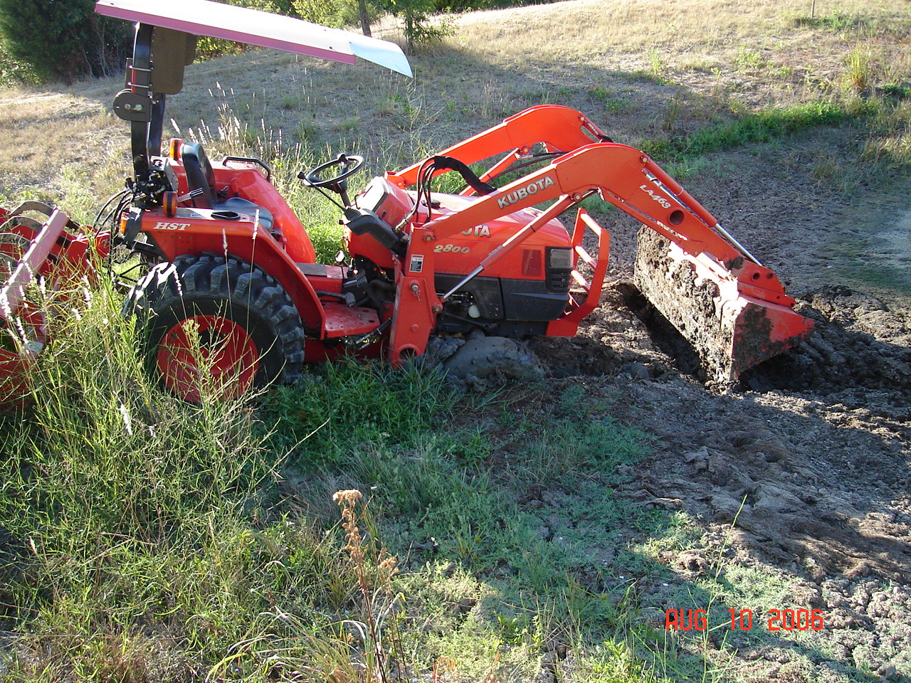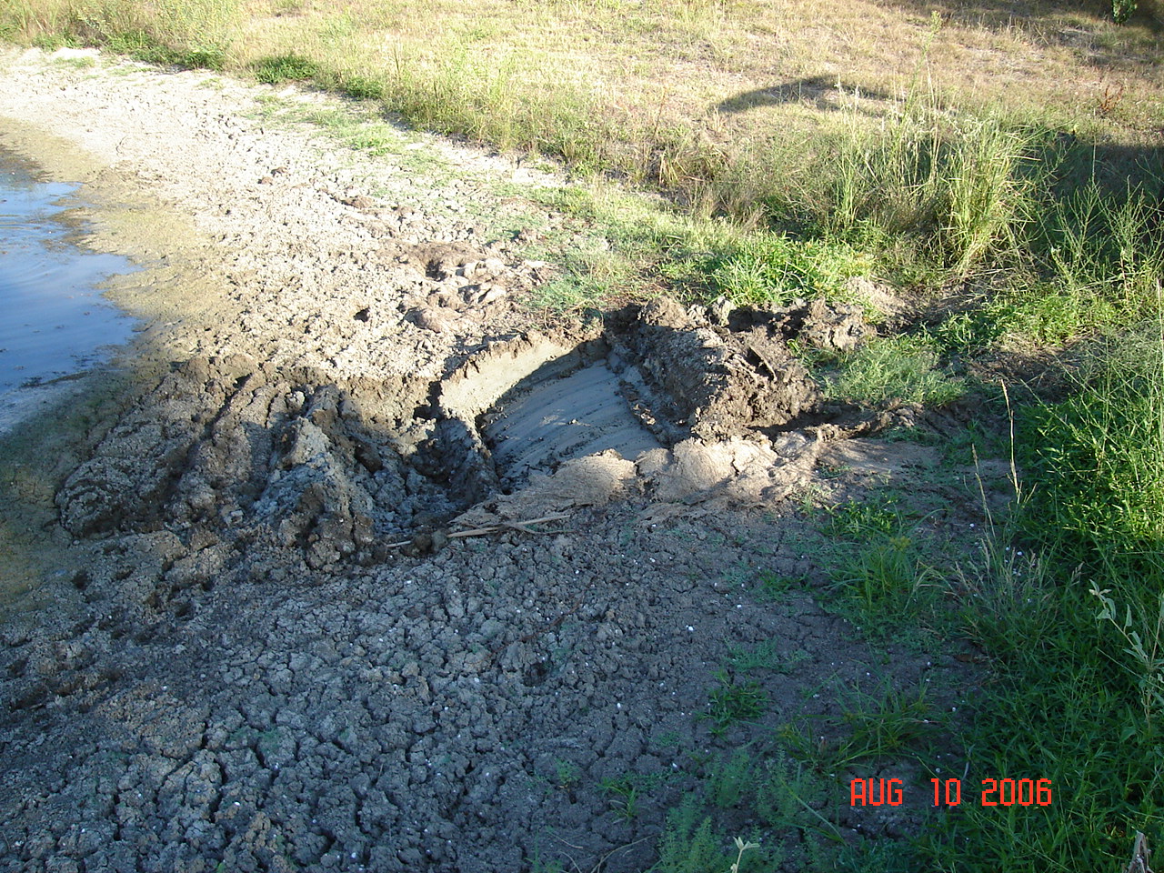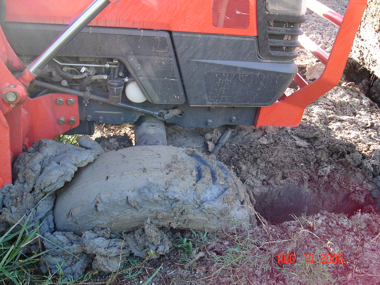 I went in head strong thinking that the dry stuff was not soft....wrong, I went about two feet too far and buried the ft. axle and the FEL & diff lock was no use in the soft mud so I had a brilliant idea....it worked.