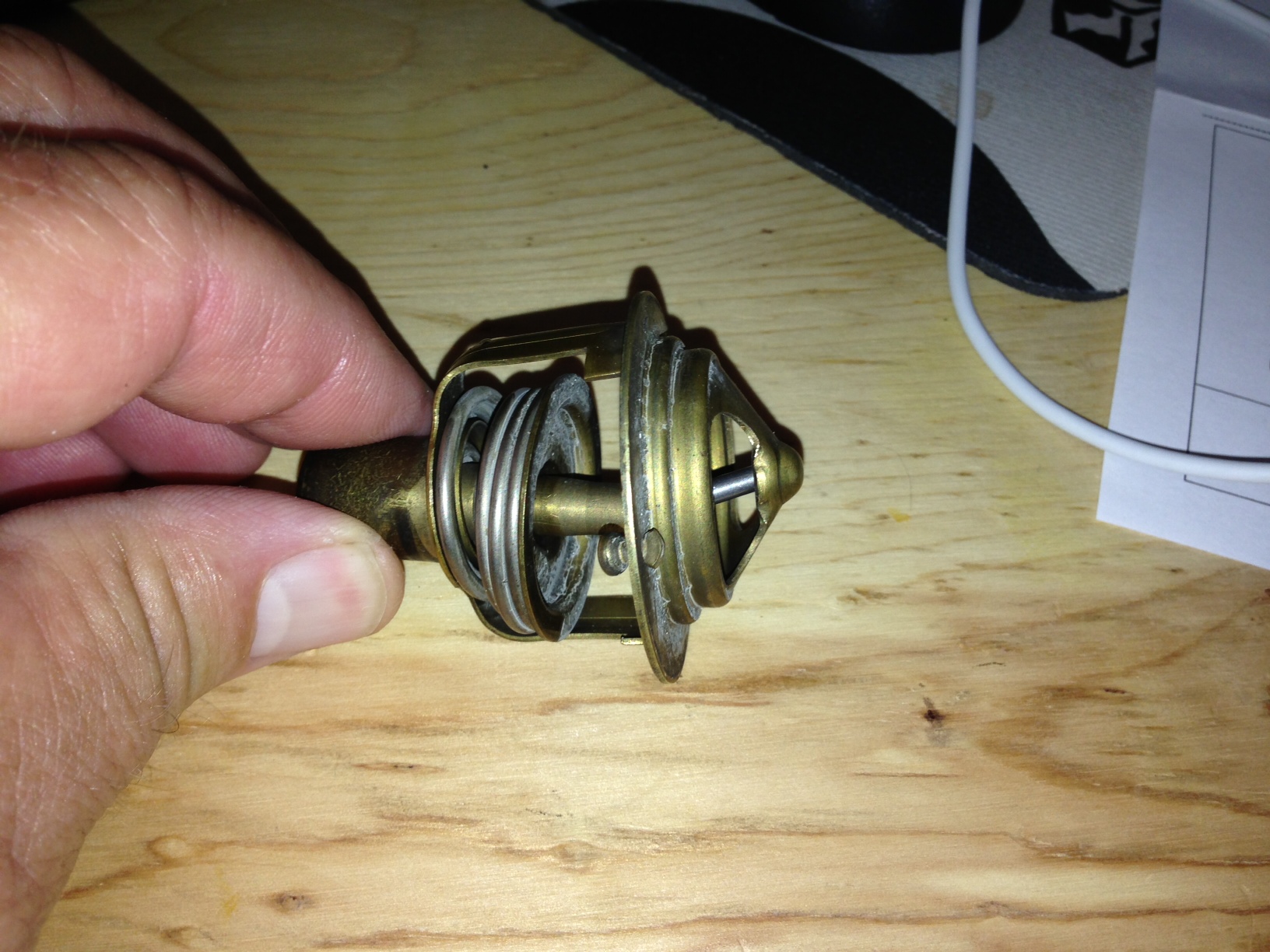 If you see the photo, it is a thermostat from my JD950, which has been overheating. I replaced the water pump and thermostat last year, but it is again overheating this year. The thermostat that I replaced last year... appeared just as this one does, with the rod extended out and to a ~120 degree angle.