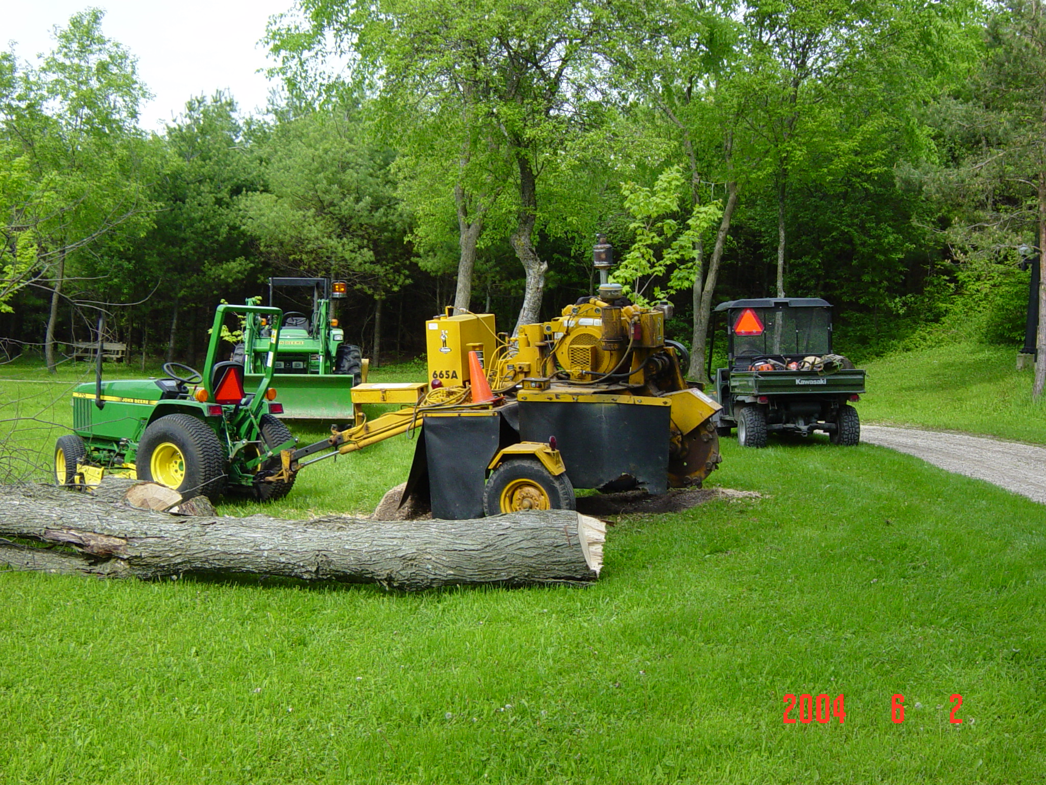 The absence of any reactive movement of the A-Fab vs. videos of the Woodland Mills, Bumalight indicates the the depth of cut must be very small. (Could one tether a belt sander atop a stump, sit down, and sip one's favorite beverage for a more satisfactory experience?)