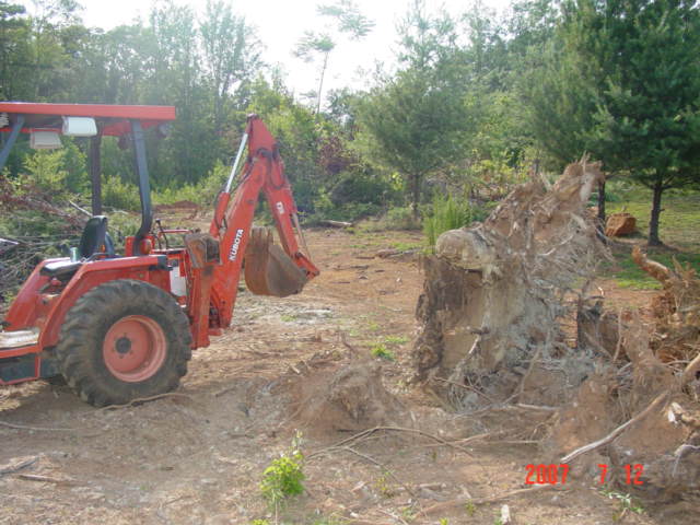 Stumps can be fun, lol. Back in 2002 I bought 40 wooded acres. My plans were to clear a site and build. I was thinking of getting a kubota in the 35 hp range with a BH to pull the stumps. A grinder was not an option so a friend and I used his L2950 to pull the first two out. I tried a size up from what I would call a small excavator, think it was $300 or so a day to rent and it didn't go much faster. Once they were out moving them to a place out of the way too for ever. A few weeks later I ended up with a full size backhoe. Even with 14,000 lbs stumps are hard. I often times found myself moving away from the center of the stump to get to smalled diameter roots and flipping the stump over several times when it came loose to get as much dirt off to lighten it some. Not just the time I saved but the wear and tear of pulling the 40 or 50 stumps makes me glad I went the way I did. There is a level of satisfaction to be had when you do get a large stump out, kind of like reeling in a large fish.