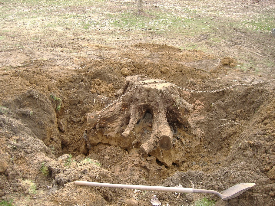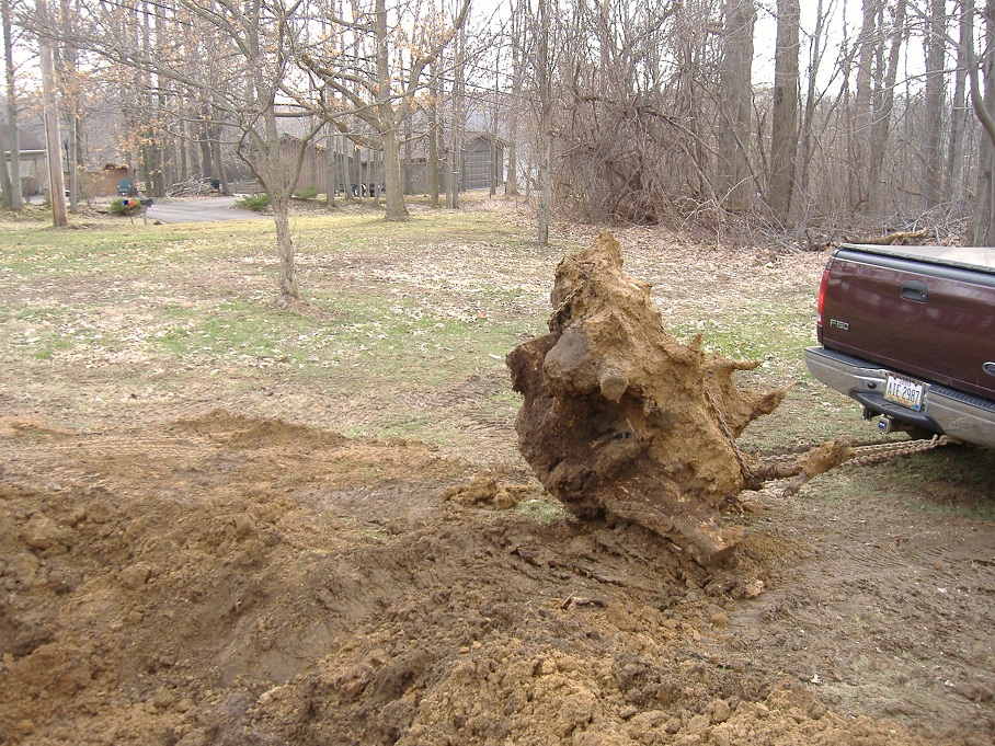 I had time to get outside today and work on the stump again (weather was great).I finally got it out.A few of you mite remember a post I made,where I was about to give up on this thing.After roughly 4 hrs. of digging,it was loose enough to pull out with the truck.